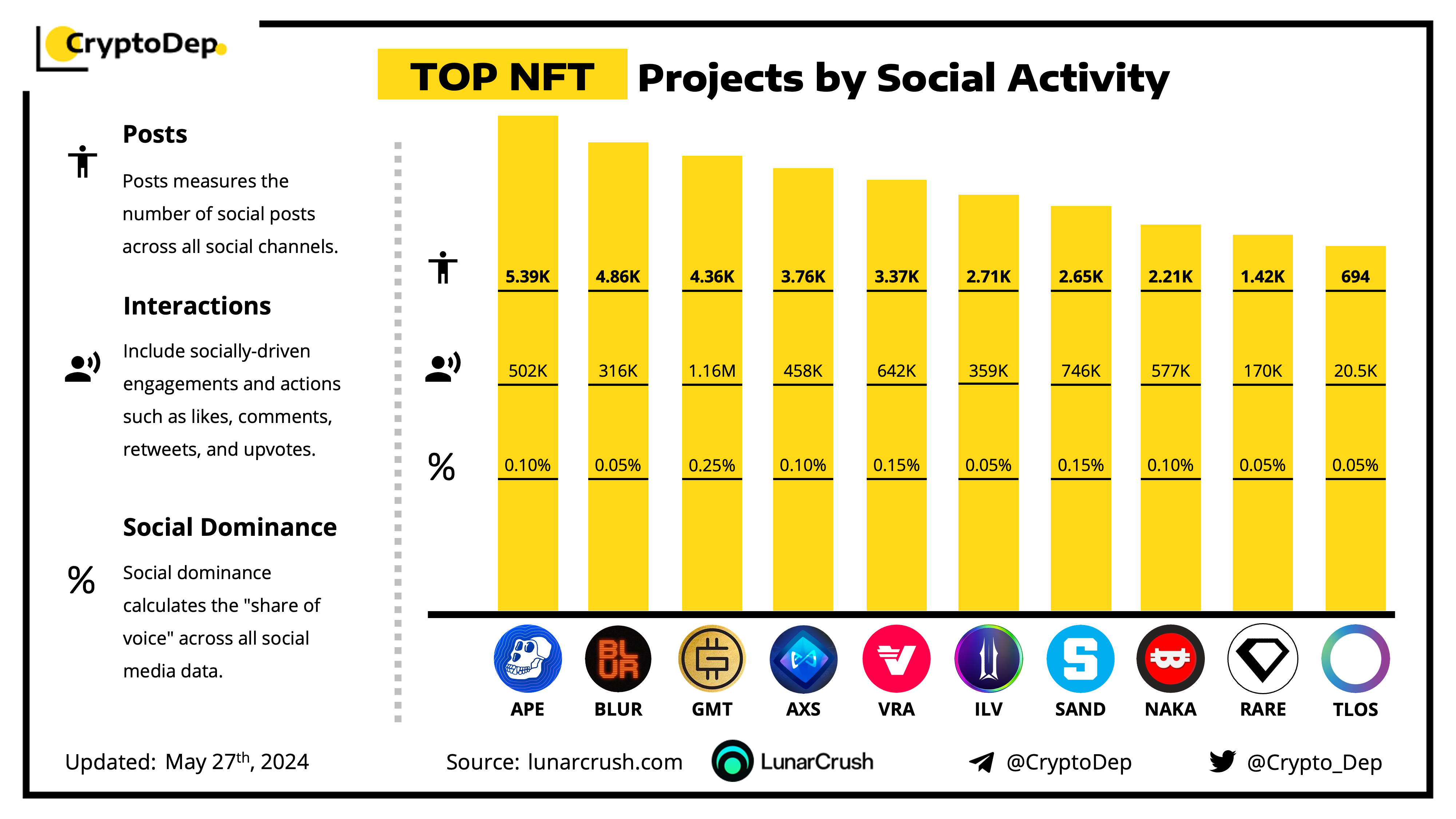 Interactions include socially-driven engagements and actions such as likes, comments, retweets, and upvotes.
