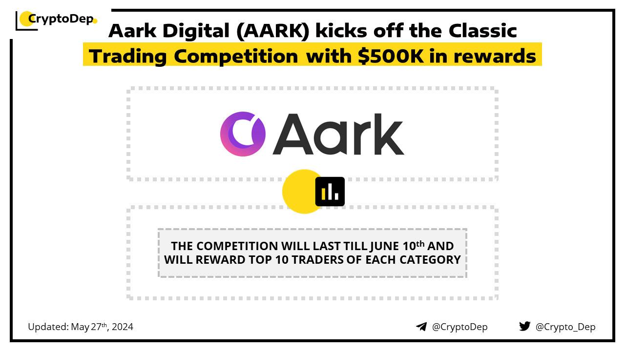 Aark Digital has announced the launch of the Aark Classic Trading Competition which will last till June 10th. The competition will have a minimum prize of $50K which will increase based on cumulative trading volume. The prize will be distributed to top 10 winners of each category, including volume and PnL.