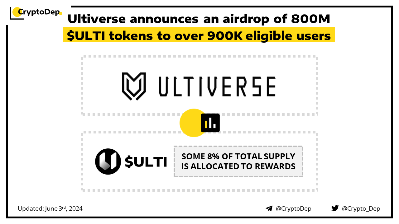 Ultiverse announces an airdrop of 800M $ULTI tokens to over 900K eligible users