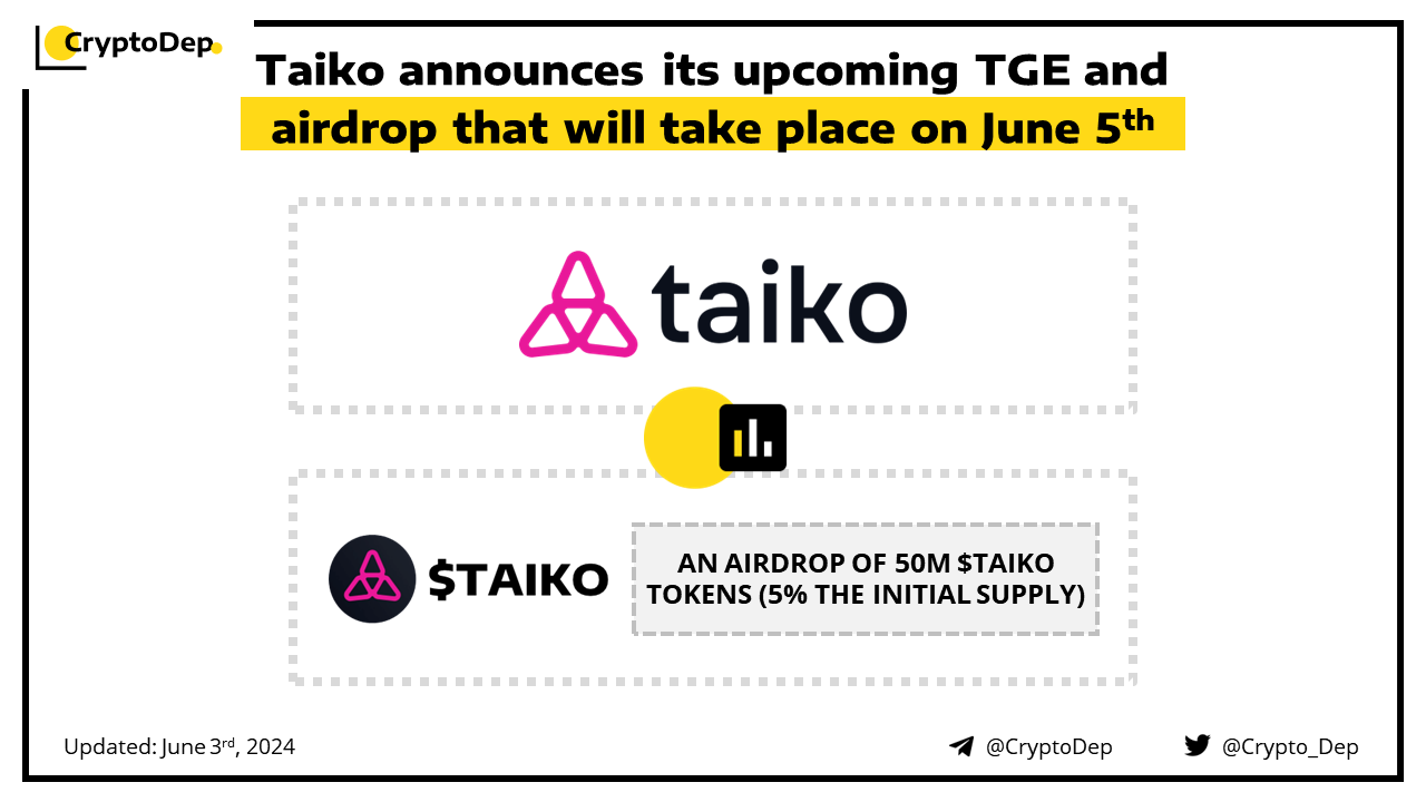 Taiko announces its upcoming TGE and airdrop that will take place on June 5th