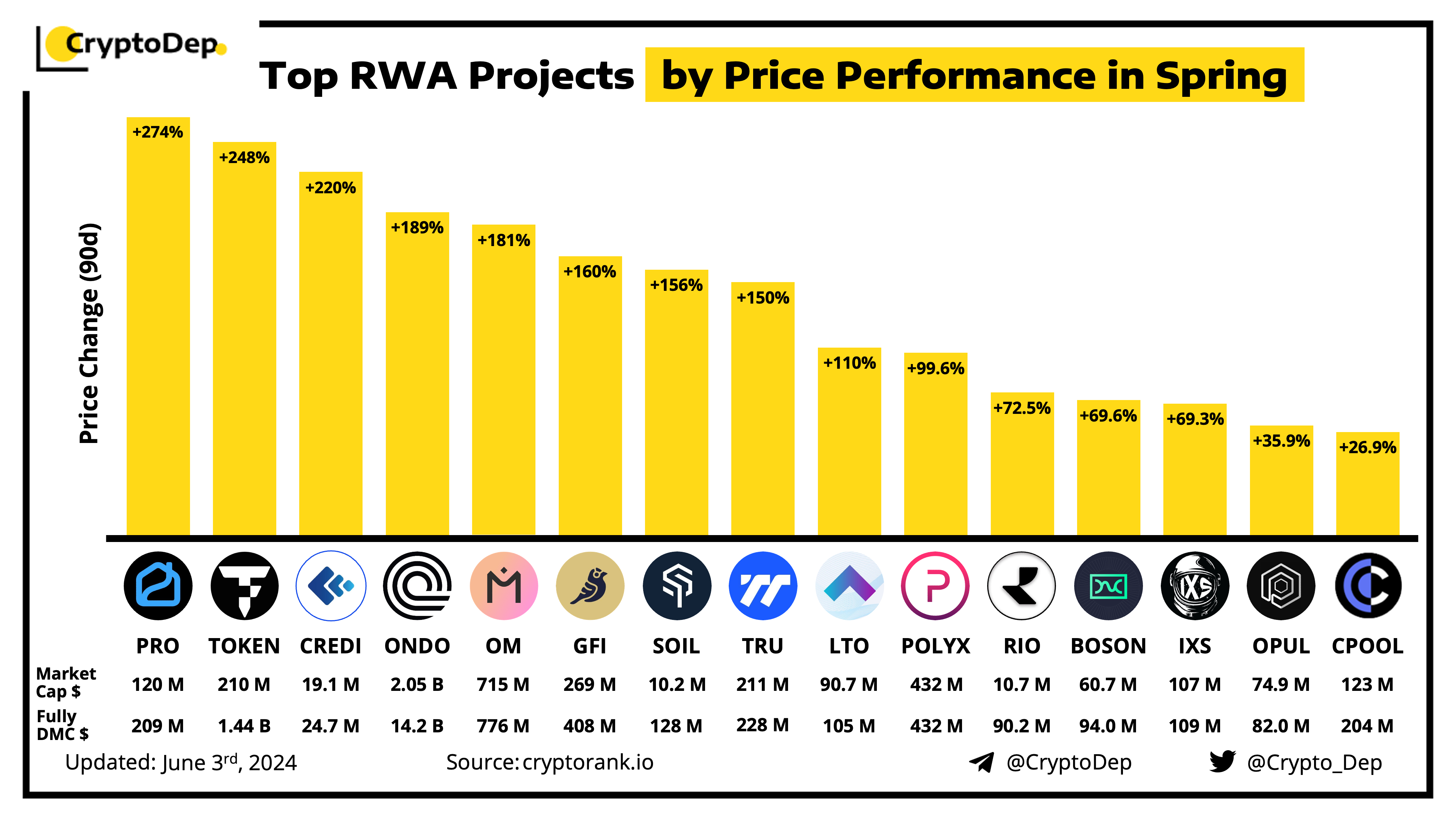 Real World Assets (RWAs) became one of the most hyped narratives of current market momentum. Let's explore the leading RWA projects ranged by price performance during this Spring.