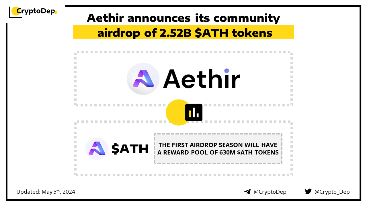 Aethir unveils the details of its $ATH community airdrop for 860K participants. The airdrop will have a total reward pool of 2.52B $ATH tokens (6% of the total token supply) and will be divided into three seasons. Out of 630M $ATH tokens, allocated to Season 1, some 74.5% is reserved for Aethir community members and 25.5% to external communities, including APhone, ΡΠΎ.nΠ΅t, CARV, Rivalz Network, Zero1 Labs, and Delabs Games.