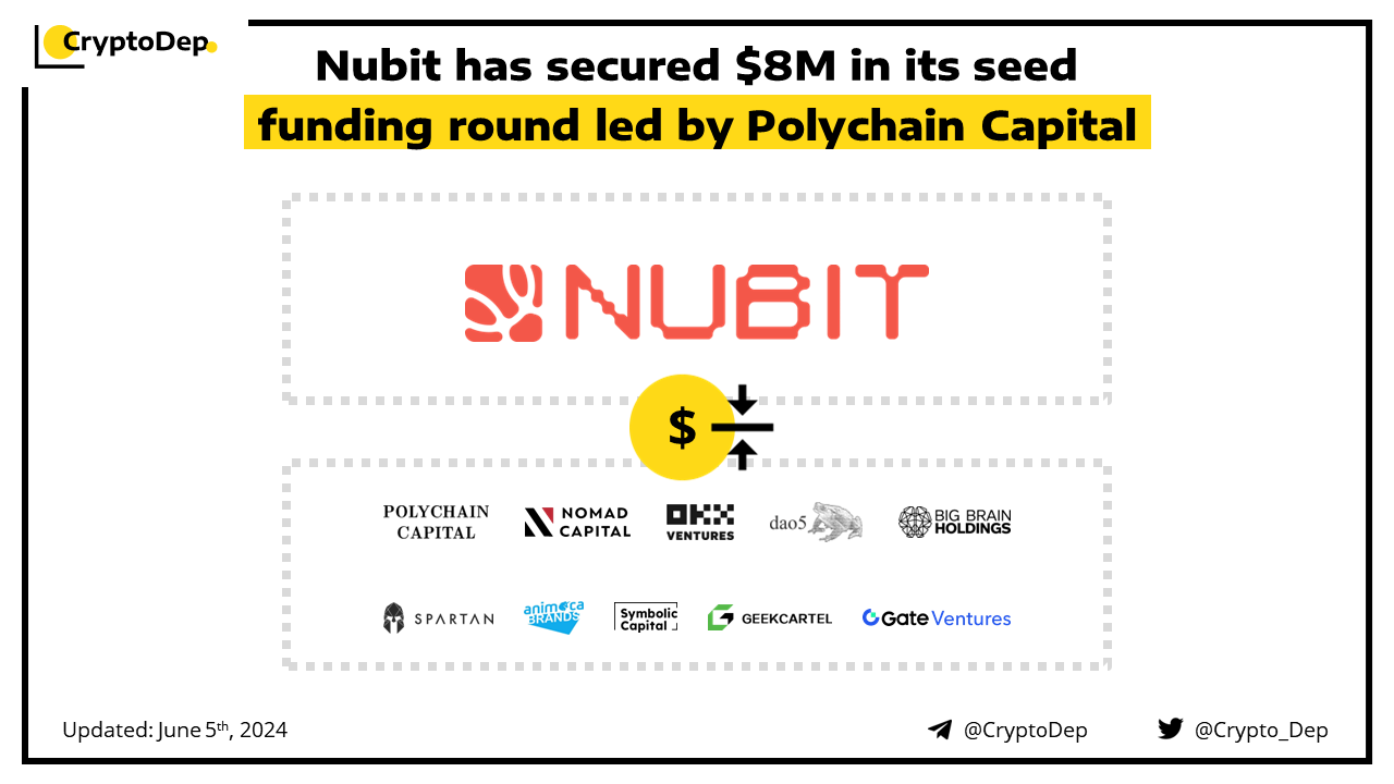 Nubit announces the closure of its $8M seed investment led by Polychain Capital. Additional round participants included Nomad Capital, Spartan Group, L2IV, Big Brain Holdings, GCR, Protagonist, Gate Ventures, Animoca, Mask Network, and others. The funding will be used to accelerate blockchain scalability and multichain ecosystem. Nubit is a scalable, cost-efficient, data availability layer secured by Bitcoin for the Bitcoin community.