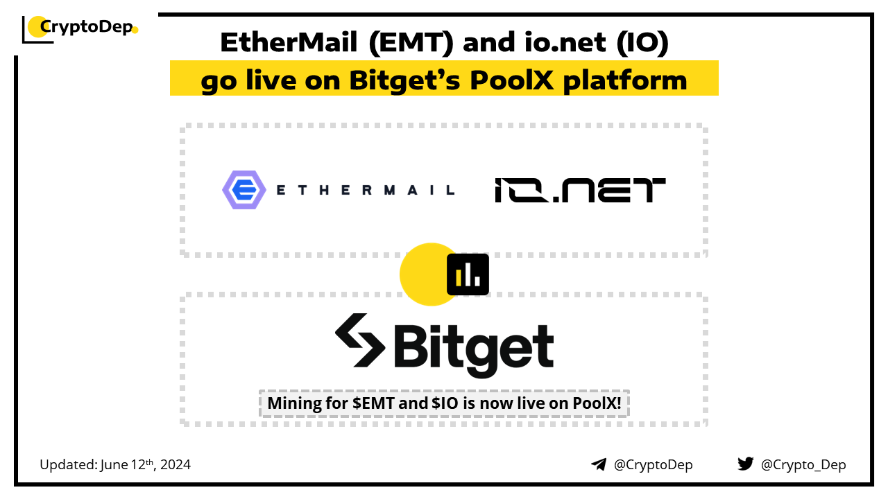 EtherMail and io.nΠ΅t have been launched on PoolX, Bitget's latest stake-to-mine platform. Users can now stake $EMT and $IO to mine $EMT and $IO respectively. The mining period will be live till June 22nd, 8:00 and 10:00 AM UTC. EtherMail is building the bridge between Web 2.0 and Web 3.0 via email, bringing full inbox ownership, control, and sovereignty back to users. io.nΠ΅t is a Solana-based DePIN project focused on sourcing GPU computing power.