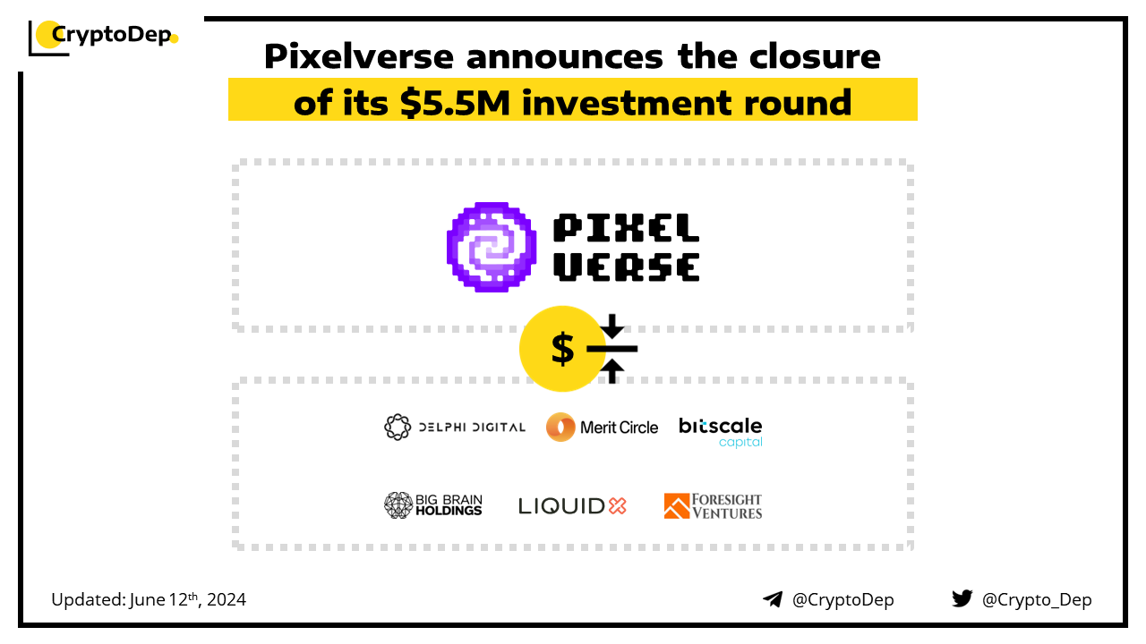 Pixelverse, a Telegram-based crypto gaming ecosystem, has closed its $5.5M funding. Among round participants are Delphi Ventures, Merit Circle, Bitscale Capital, Ghaf Capital, Big Brain Holdings, LiquidX, and Foresight Ventures. Pixelverse will use the funding to further develop its Telegram-based tap-to-earn video game.