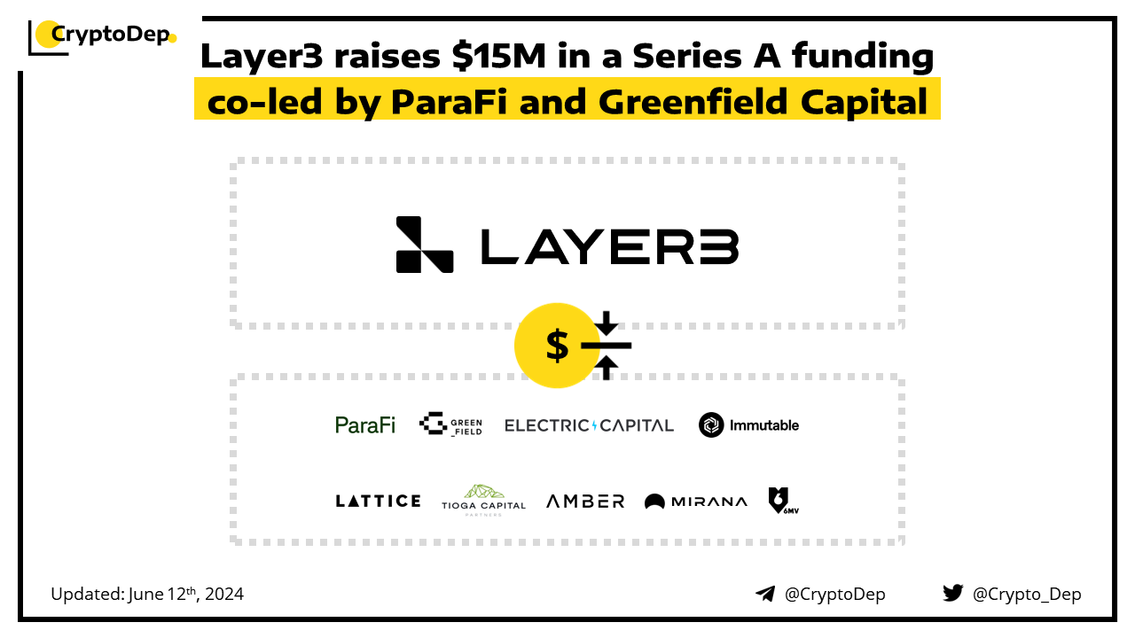 Layer3, a token distribution protocol, announces the closure of its $15M Series A investment led by ParaFi and Greenfield Capital. Additional round participants included Electric Capital, Immutable, Lattice, Tioga, LeadBlock, Amber, Mirana, 6th Man Ventures, and Third Prime among others. The funding comes as the firm is set to launch its native $L3 token and conduct an airdrop this summer, with the airdrop snapshot taken on May 10th. With fresh funding in hands, Layer3 plans to expand its team and expand its presence in the AsiaβPacific (APAC) region.