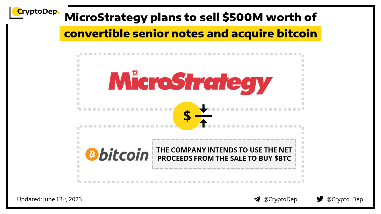 MicroStrategy has disclosed its intentions to offer $500M worth of convertible senior notes in a private offering. The firm wants to use the net proceeds from the sale of the notes to acquire additional bitcoin and for general corporate purposes. MicroStrategy, an independent publicly traded analytics and business intelligence company, currently holds 214,400 BTC.