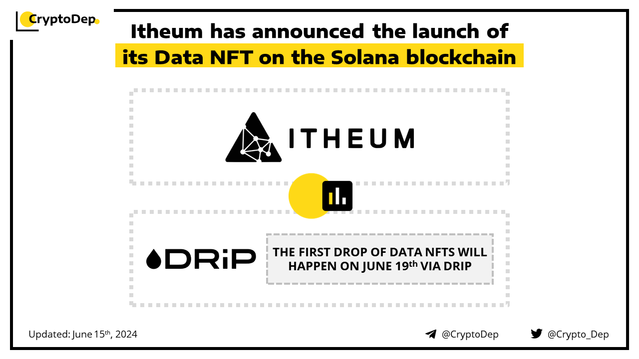 Itheum rolls out Data NFTs on Solana, allowing musicians, artists, or authors to tokenize their skills, enabling shared ownership and access through multiple copies of Data NFTs. The project has also announced an upcoming NFT drop that will take place on June 19th on the Drip Haus platform. Itheum is the decentralized data brokerage platform that transforms users' personal data into a highly tradable asset class.