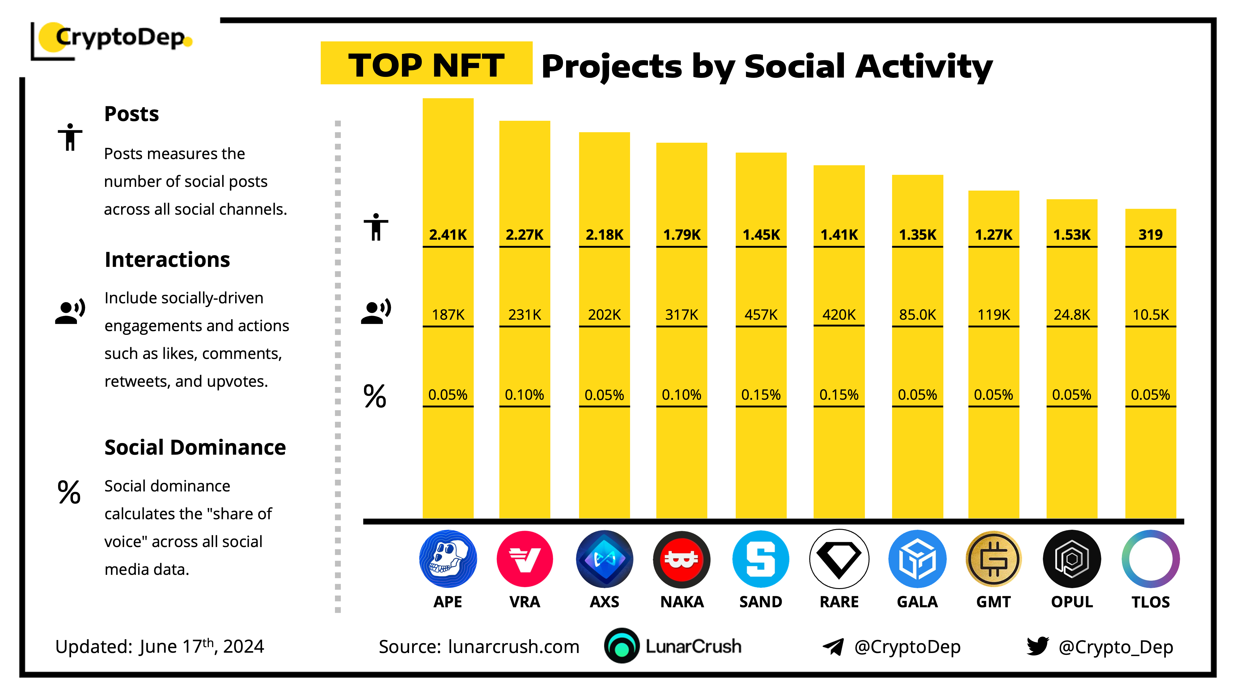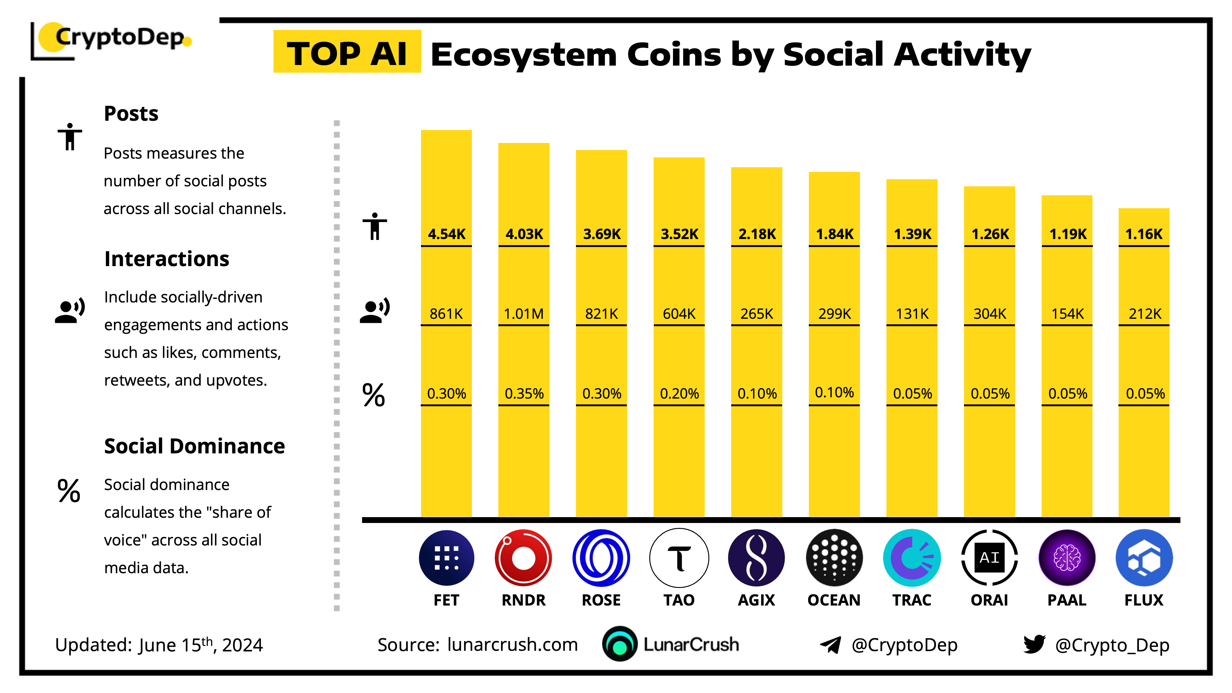 Interactions include socially-driven engagements and actions such as likes, comments, retweets, and upvotes.