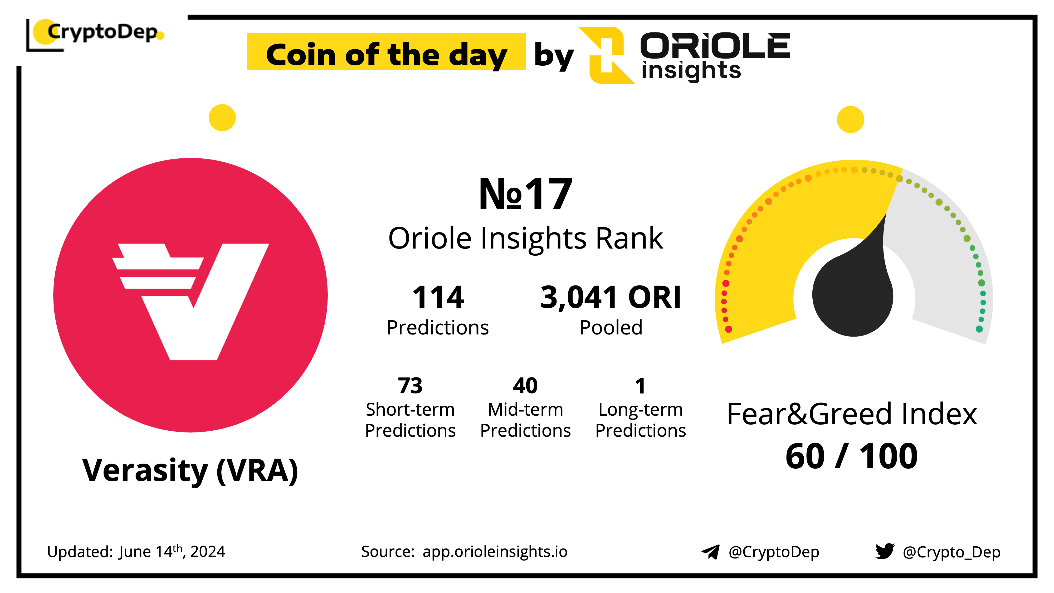 Predict Verasity price movements on Oriole Insights