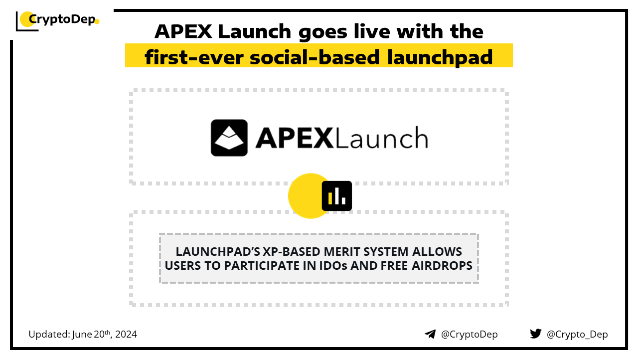 APEX Launch comes out of stealth, the first-ever social-based launchpad platform. Users can now access the APEX Launch via our invitational link, refer their friends, and complete tasks to earn XP. Launchpadβs XP-based merit system allows users to participate in IDOs and free airdrops.