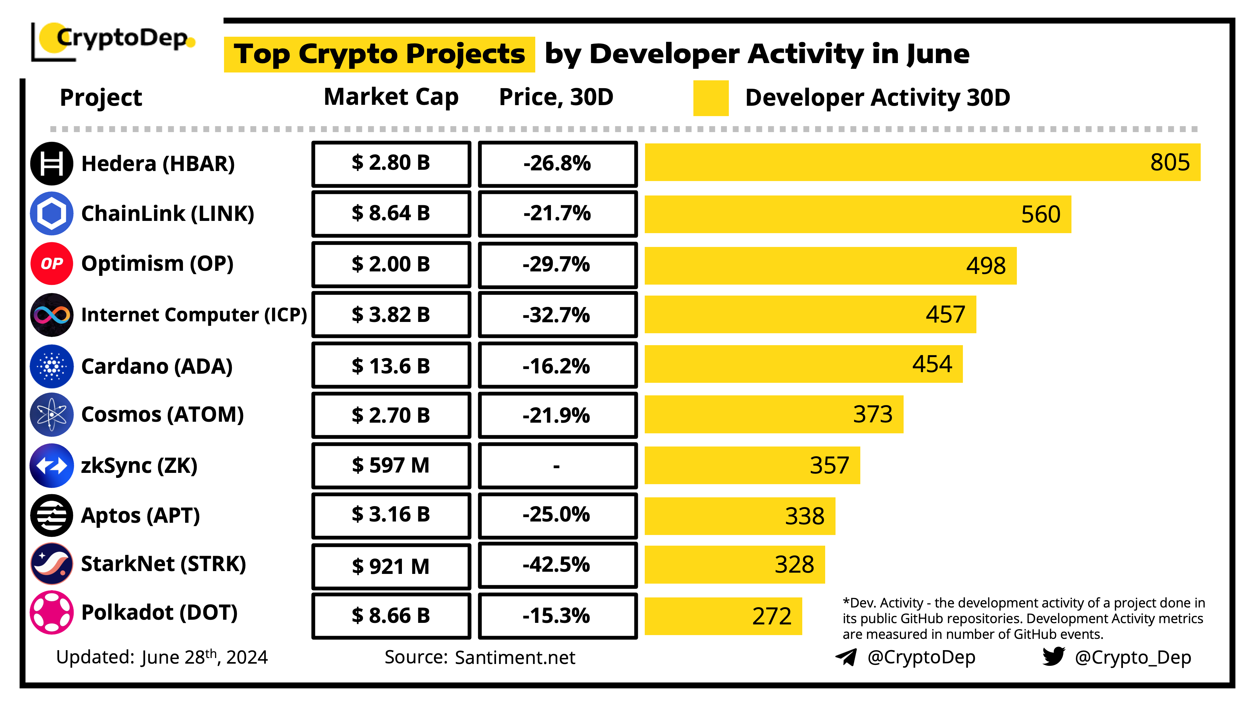 ββTop Crypto Projects by Developer Activity in June