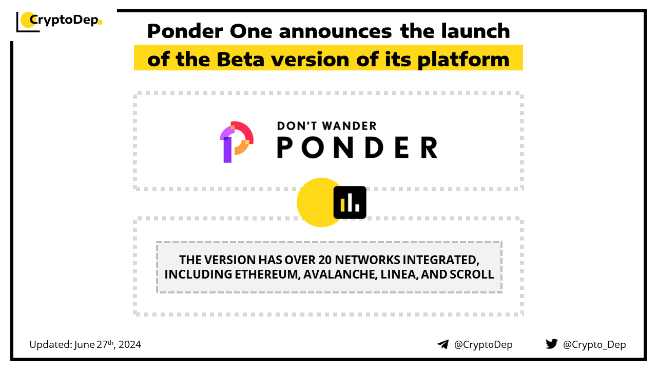Ponder One has released the Beta version of its platform. This version has over 20 networks integrated into its engine including Ethereum, Avalanche, Linea, Scroll, Arbitrum, and more. Users can now find the best rates for swapping, bridging & more there.