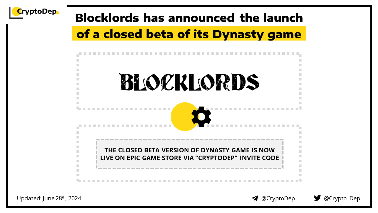 The closed beta version of Dynasty game is now live on the Epic Game store via the βCryptoDep" invite code! Dynasty provides a distinctive gaming experience featuring account-based smart wallets, free daily transactions, and a cutting-edge matchmaking system.