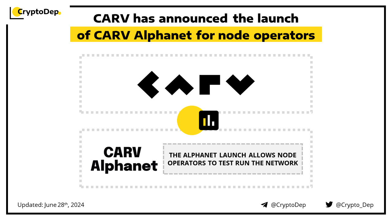 The Alphanet allows node operators to test run the network. Starting today, Windows and MacOS users can officially download the node operation software. Beginning July 1st, users can start running nodes on Alphanet and earn test tokens. CARV is a modular data layer that facilitates data exchange and value distribution across gaming and AI. It has previously raised $10M in a round backed by IOSG Ventures, OKX Ventures, Consensys, Fenbushi Capital, Hashkey, and others