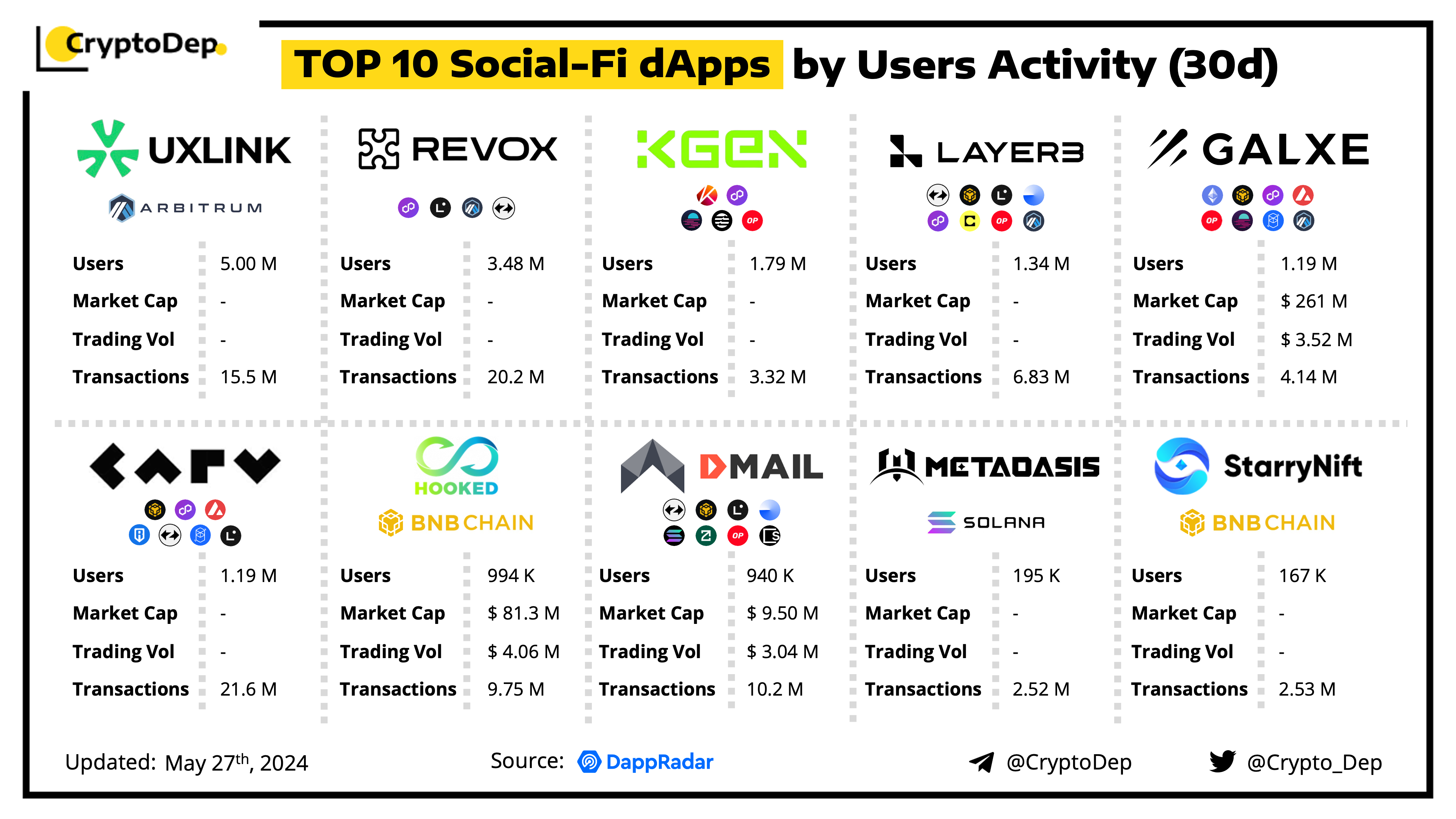 ββTOP 10 Social-Fi dApps by Users Activity (30d)