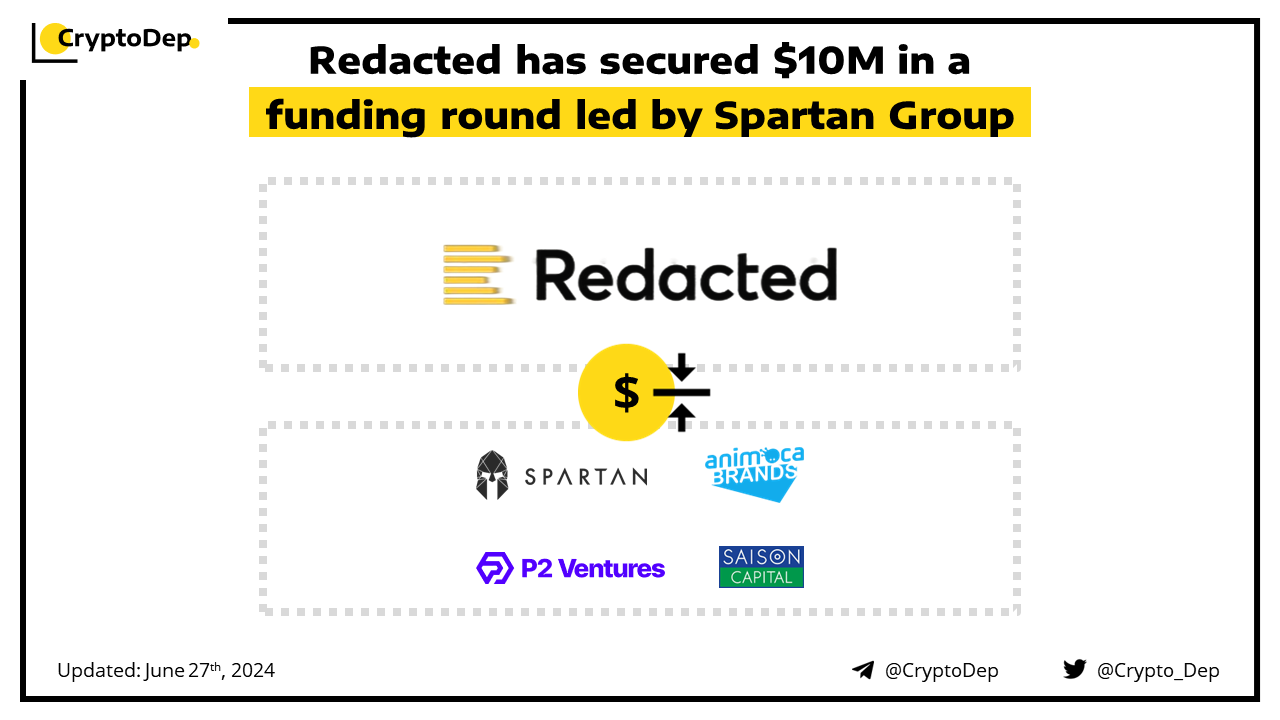 Redacted raised $10M for its Web3 entertainment and gamification ecosystem. The round was led by Spartan Group, with participation from Saison Capital, Animoca Brands, Polygon Ventures, and angel investors. Redacted is building an ecosystem of products to form an entertainment datasphere, where Web3 users can play, trade, watch, and get rewarded.