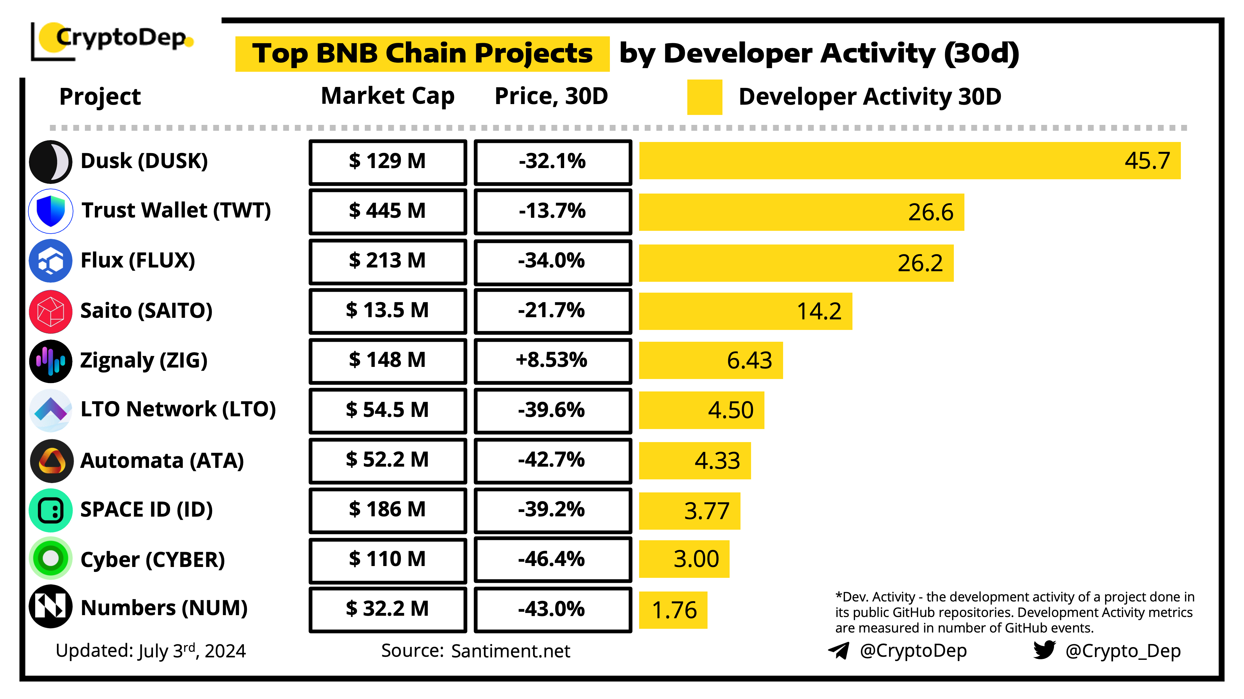 ββTop BNB Chain Projects by Developer Activity (30d)