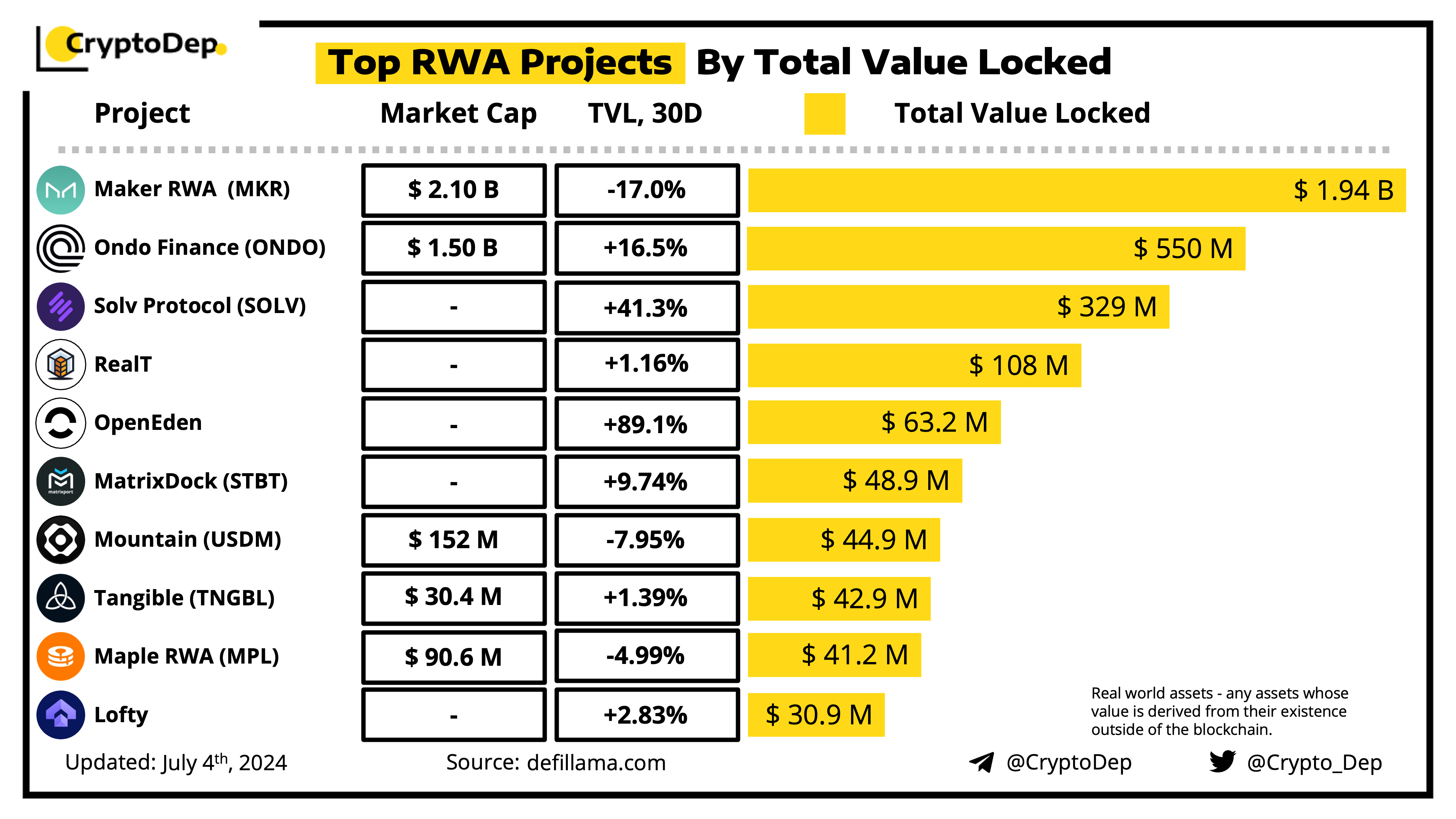 Real World Assets (RWAs) became one of the most hyped narratives of current market momentum. Let's explore the leading RWA projects ranged by TVL.