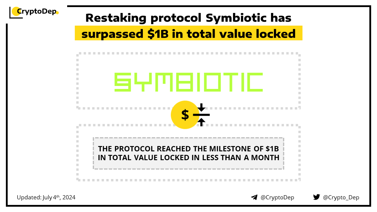 ββRestaking protocol Symbiotic has surpassed $1B in total value locked