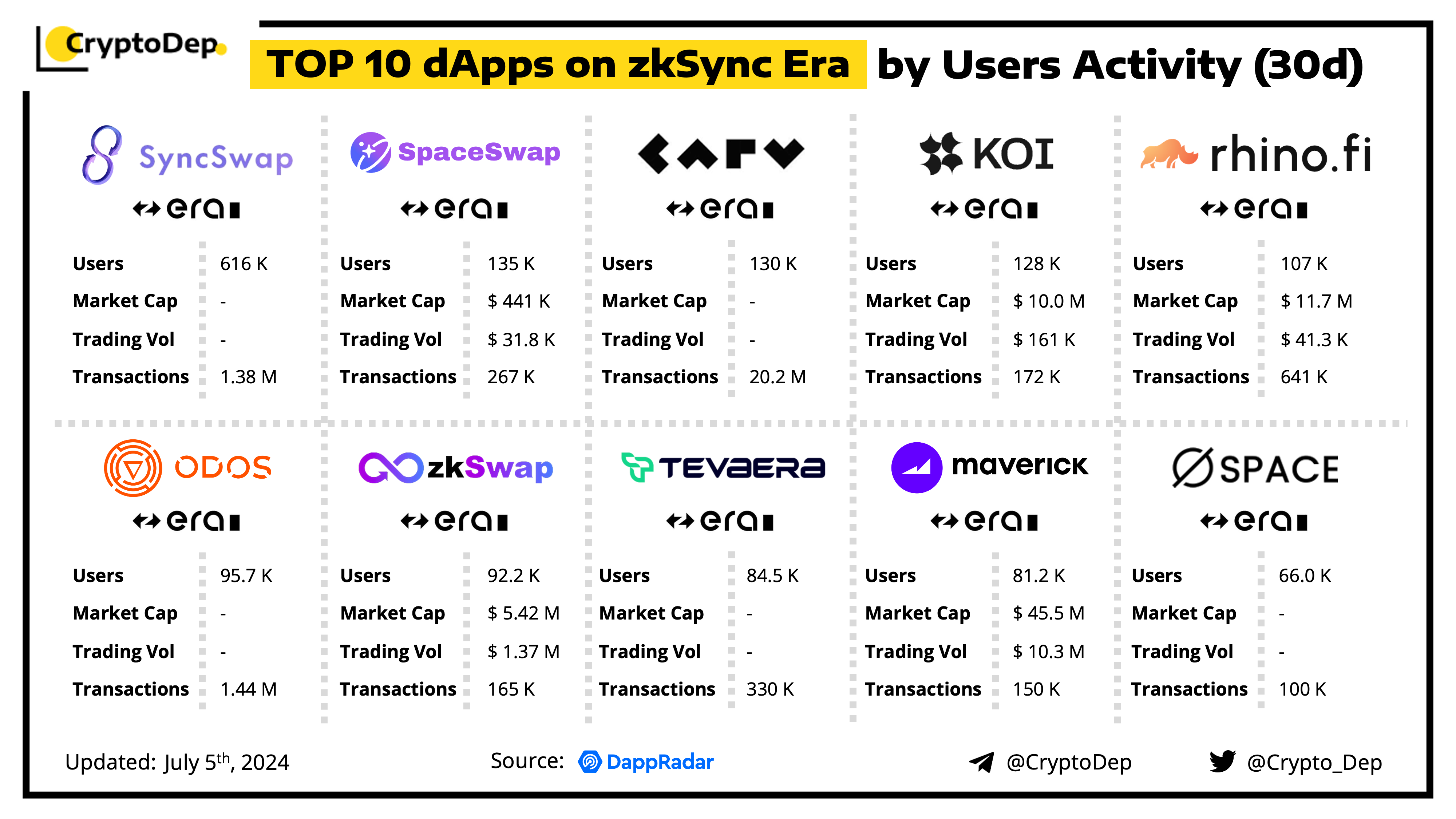 ββTop 10 dApps on zkSync Era by Users Activity (30d)