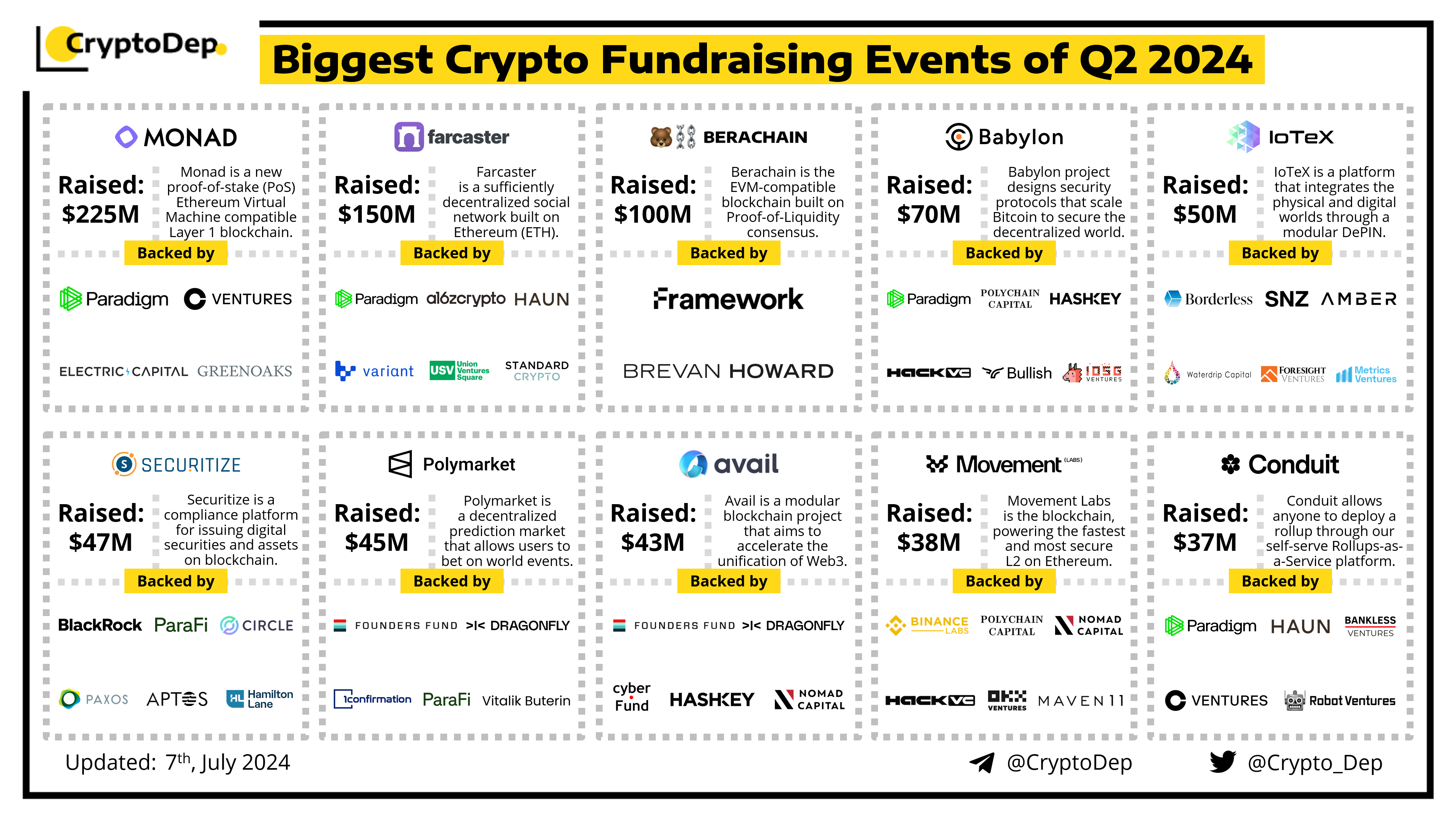 ββBiggest Crypto Fundraising Events of Q2 2024