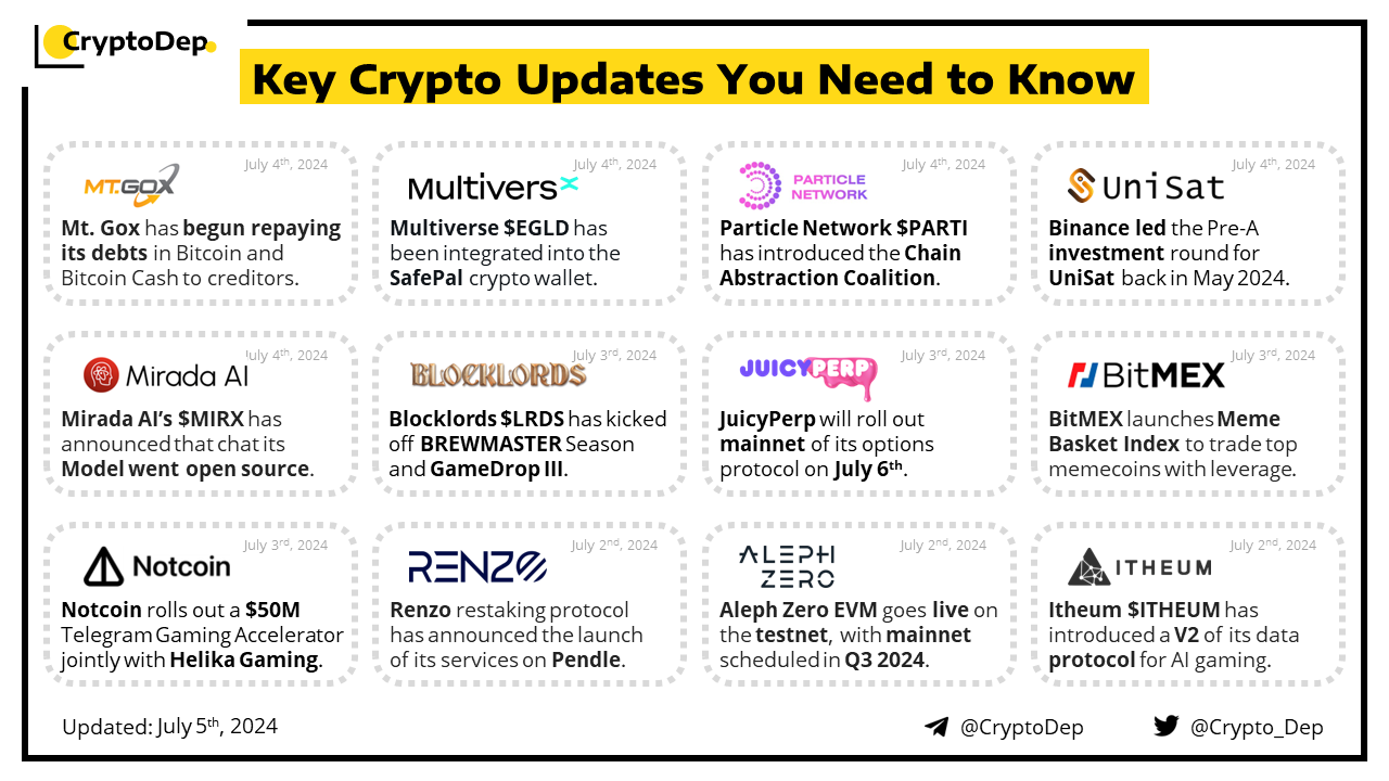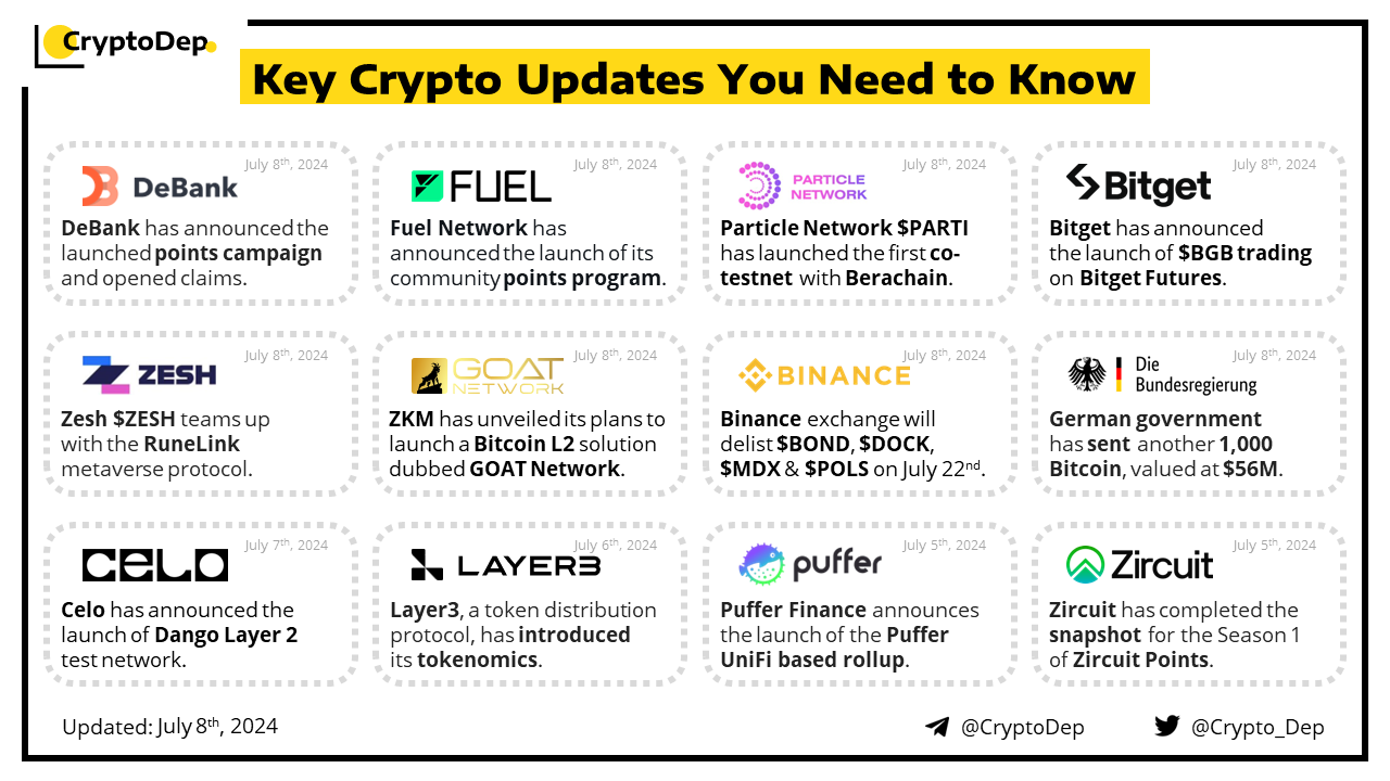 Metis co-founder's ZKM has unveiled its plans to launch its Bitcoin Layer 2 GOAT Network in Q3 2024. The network aims to become the first decentralized Bitcoin Layer 2 to share network ownership. Moreover, GOAT Network has secured 5,000 BTC (~$287M) in commitments from institutional node operators and also plans to open a Series A fundraising round soon.