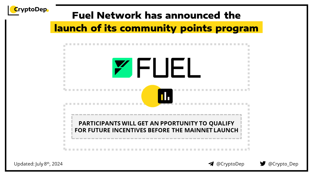 Fuel Network kicks off the Fuel Points Program allowing users to qualify for future incentives before the mainnet launch. To join the program, users need to deposit one or several of the approved assets via the Fuel Points Program Portal. Participants will earn 1.5 to 3 points per day for each dollar amount deposited, multiplied by an amount depending on the asset. The project has previously launched its final public testnet on the Sepolia network. Fuel is an operating system purpose-built for Ethereum rollups, backed by Blockchain Capital, Stratos, CoinFund, and others.