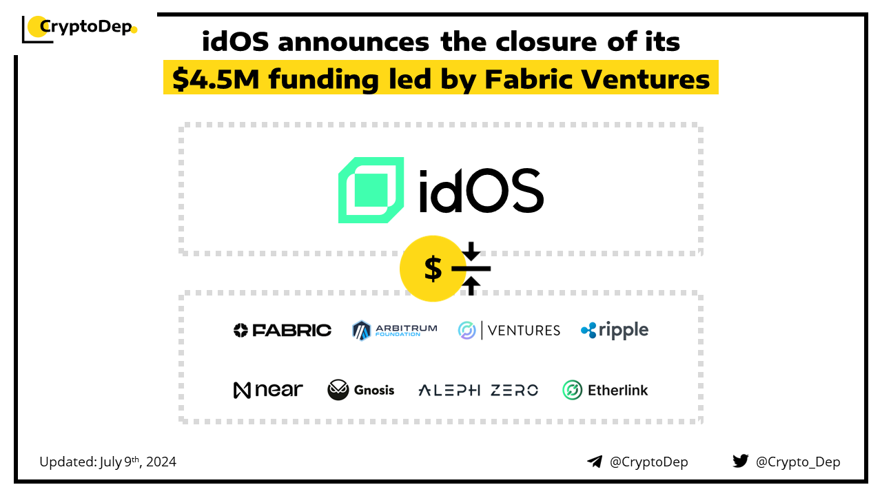 idOS, the identity layer of web3, has raised $4.5M via the Consortium funding round led by Fabric Ventures. Additional round participants included Arbitrum Foundation, Circle Ventures, Ripple, NEAR Foundation, Gnosis, Aleph Zero Foundation, Radix, and the Tezos Foundation. The idOS Consortium is a joint effort between leading web3 ecosystems and infrastructure providers to build the idOS.