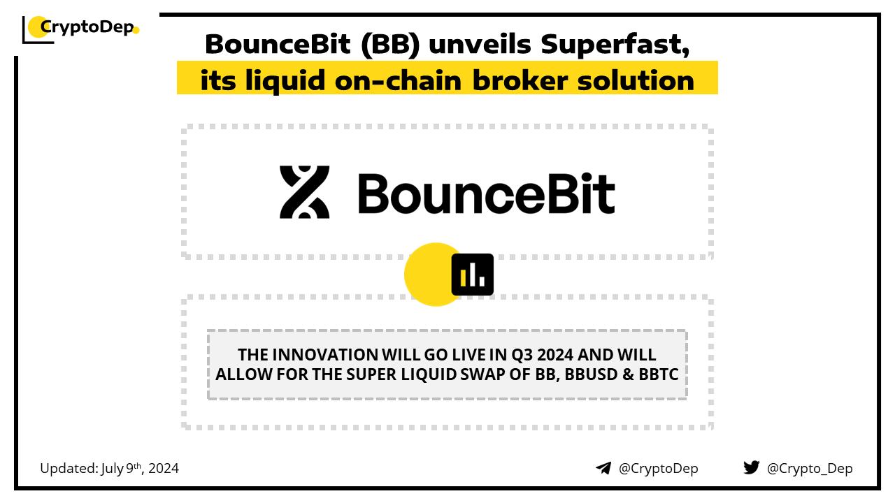 BounceBit introduces Superfast, its on-chain broker that will go live in Q3 2024. The innovation is designed to provide quick and liquid trading of BounceBit assets and will allow for the super liquid swap of BB, BBUSD & BBTC. Moreover, upon the release, BounceBit will launch a BB rewards campaign that will reward the usage of Superfast. BounceBit is building a BTC restaking infrastructure that provides a foundational layer for different restaking products.