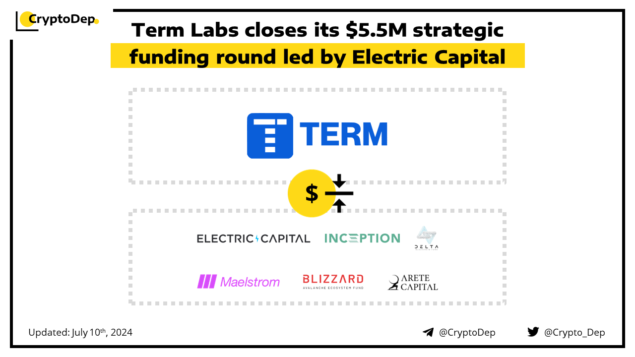 Term Labs has raised $5.5M in a strategic funding round led by Electric Capital. Additional round participants included Blizzard Fund, Inception Capital, Maelstrom, Delta Blockchain Fund, Arete Capital, and several angels. Term Labs is a blockchain research and development company dedicated to creating robust, transparent, and scalable fixed-rate lending solutions on-chain.