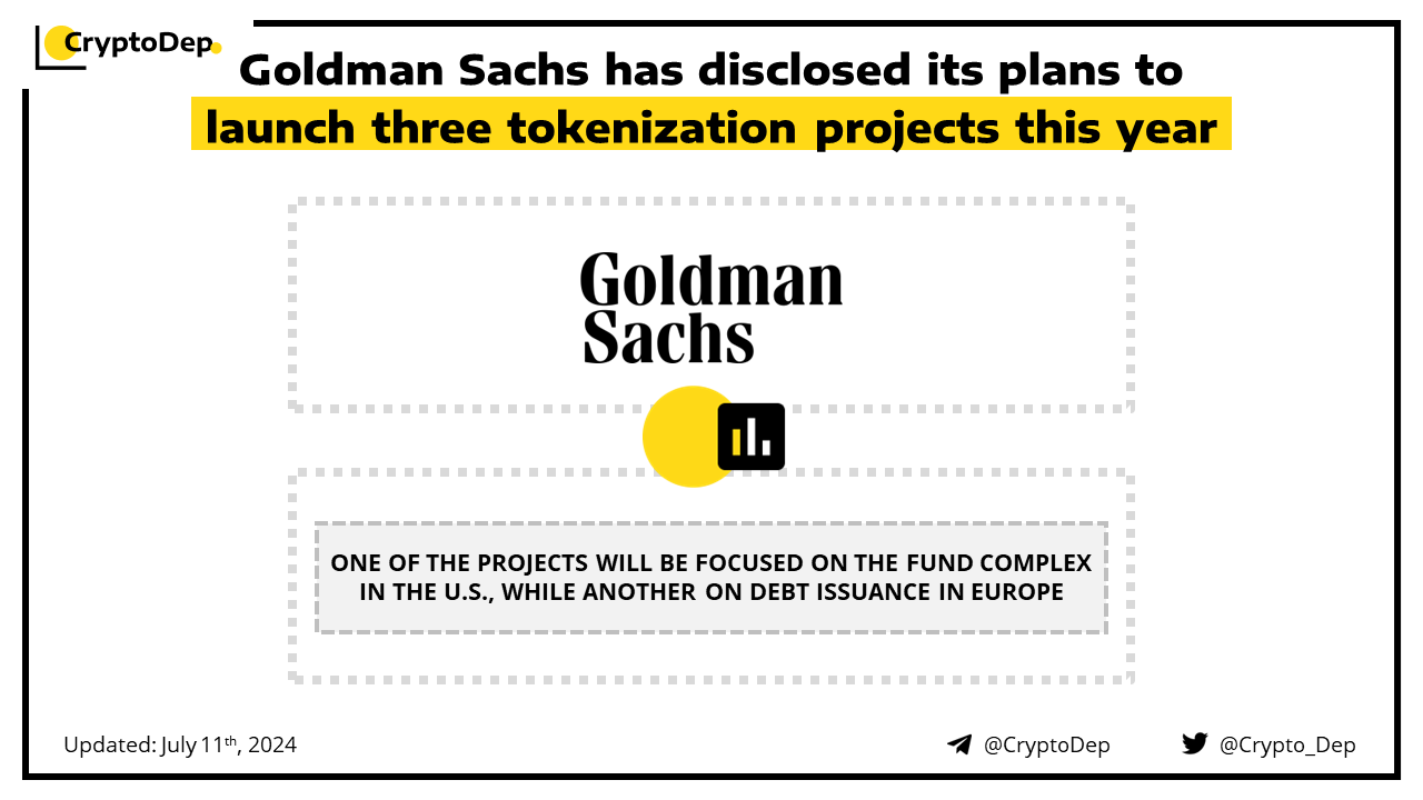 ββGoldman Sachs has disclosed its plans to launch three tokenization projects this year