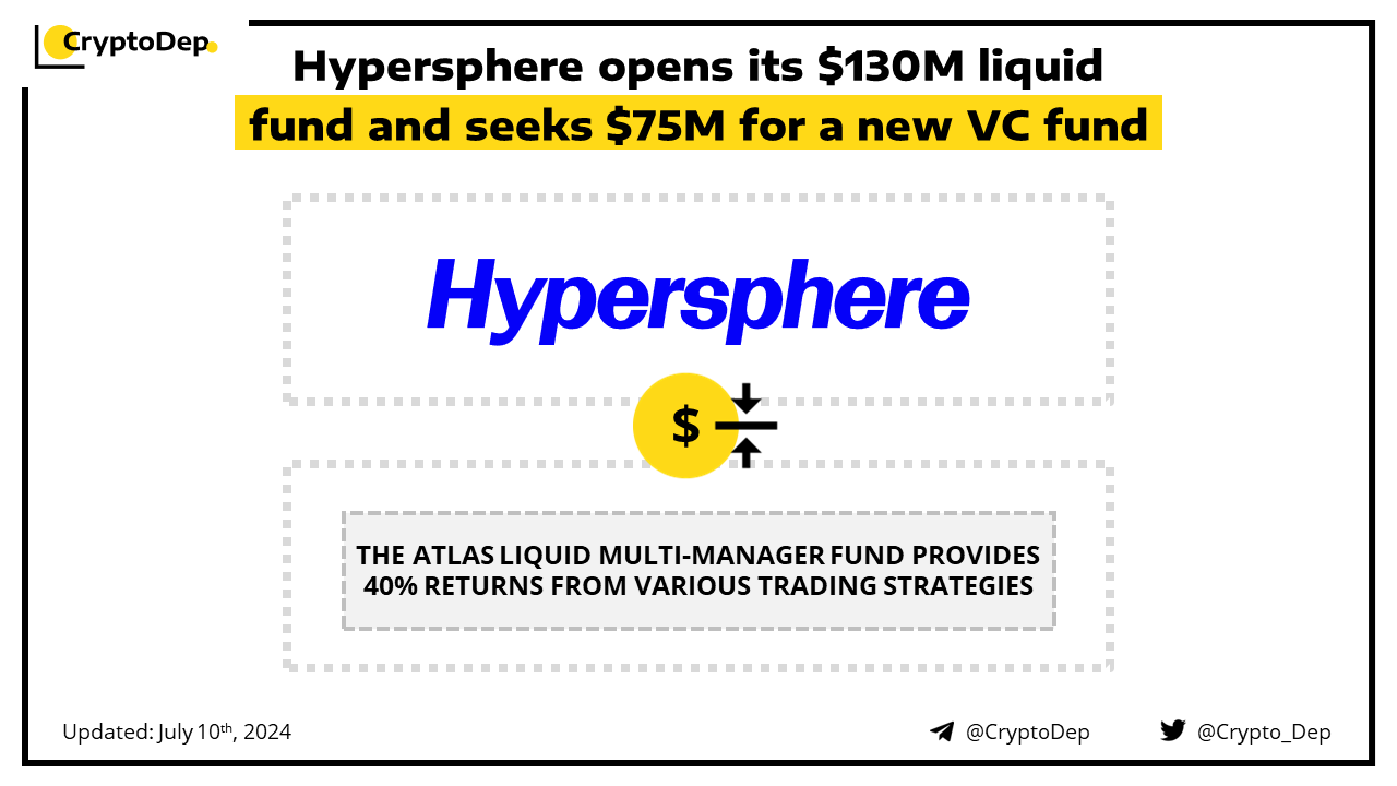 Hypersphere Ventures, a crypto investment firm, has opened its Atlas liquid fund that has already gathered $130M in assets under management. The liquid fund acts as a multi-manager fund that aims to provide 40% returns from various trading strategies, including DeFi, quantitative, market making, and arbitrage. Moreover, the firm has undisclosed its intentions to raise a new, separate VC fund worth $75M.
