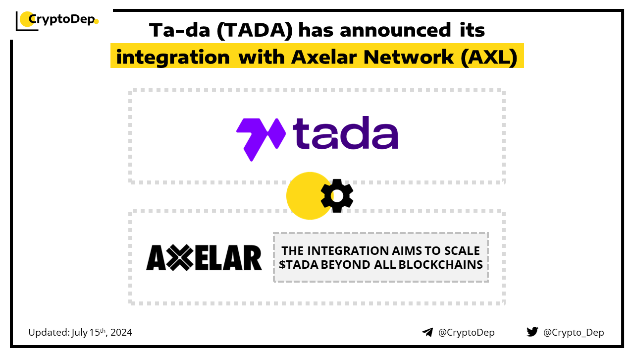 Ta-da (TADA) has announced its integration with Axelar Network (AXL)