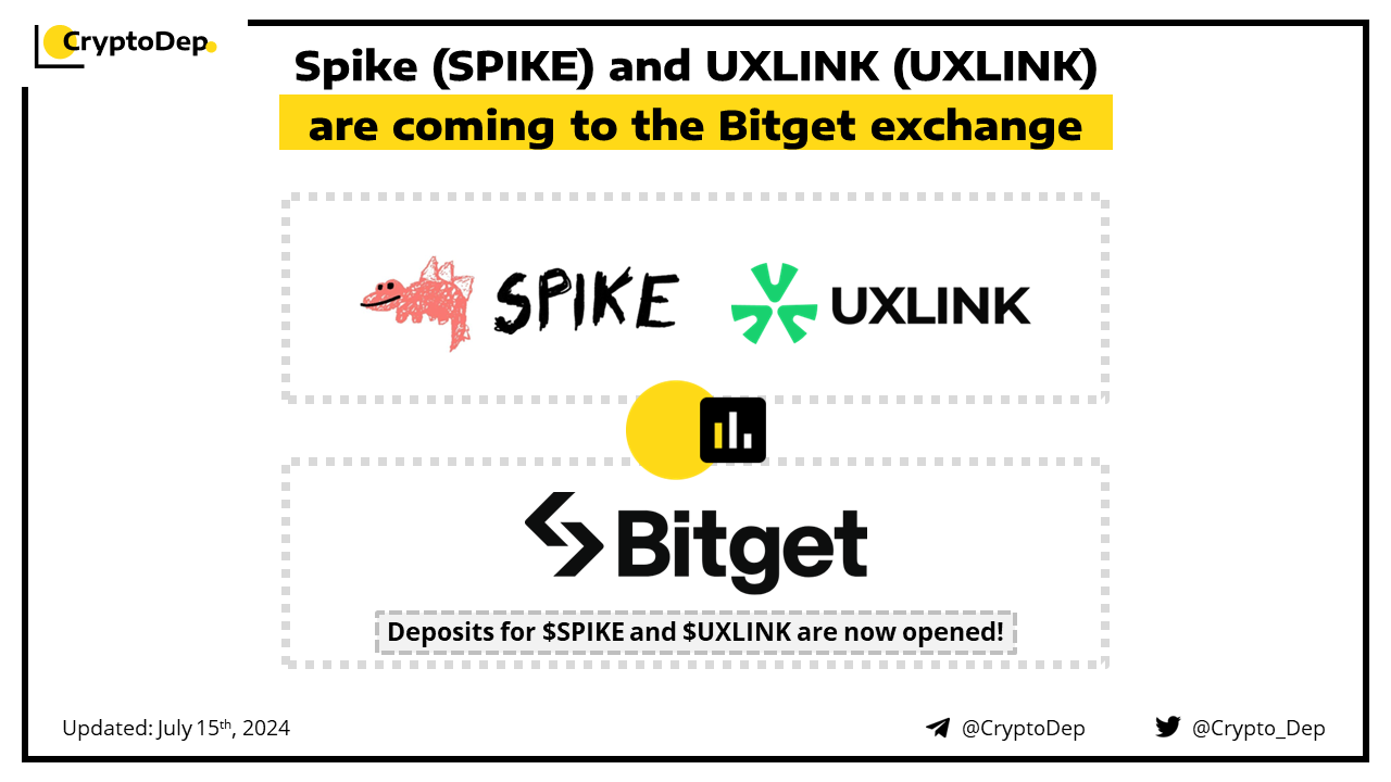 Trading for $SPIKE is already live while $UXLINK will go live on Bitget on July 18th, at 8:00 AM UTC. Deposits for both tokens are now live and withdrawals will be opened on July 16th for $SPIKE and on July 19th for $UXLINK. Spike is a meme coin around Matt Furie's first documented drawing (the creator of Pepe). UXLINK is a social infrastructure that includes social protocols and a series of Dapps.