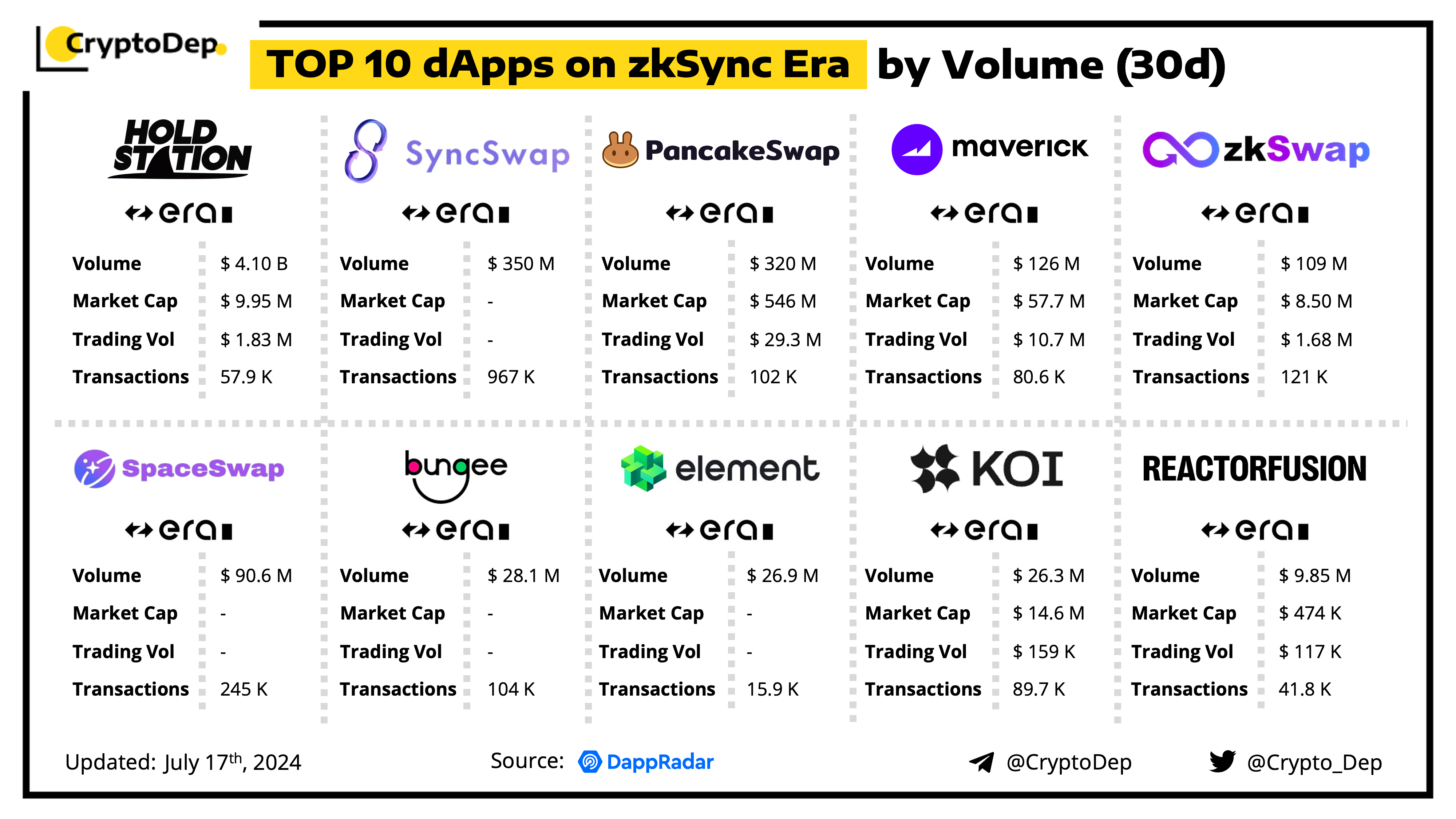 Top 10 dApps on zkSync Era by Volume (30d)