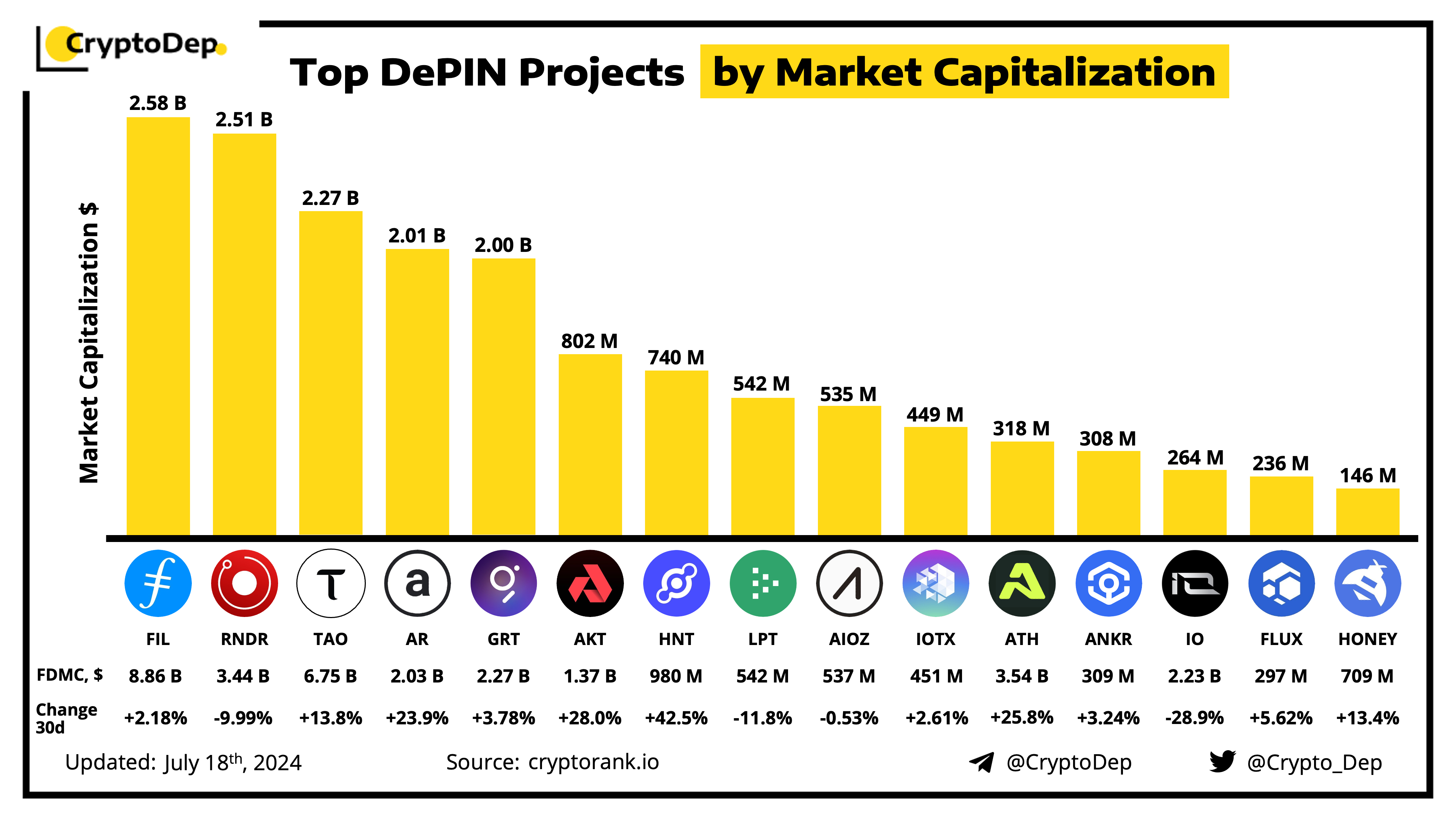 DePIN projects use crypto-incentives to coordinate the buildout & operation of critical infrastructure. Let's analyze current sector leaders by comparing their market capitalizations.