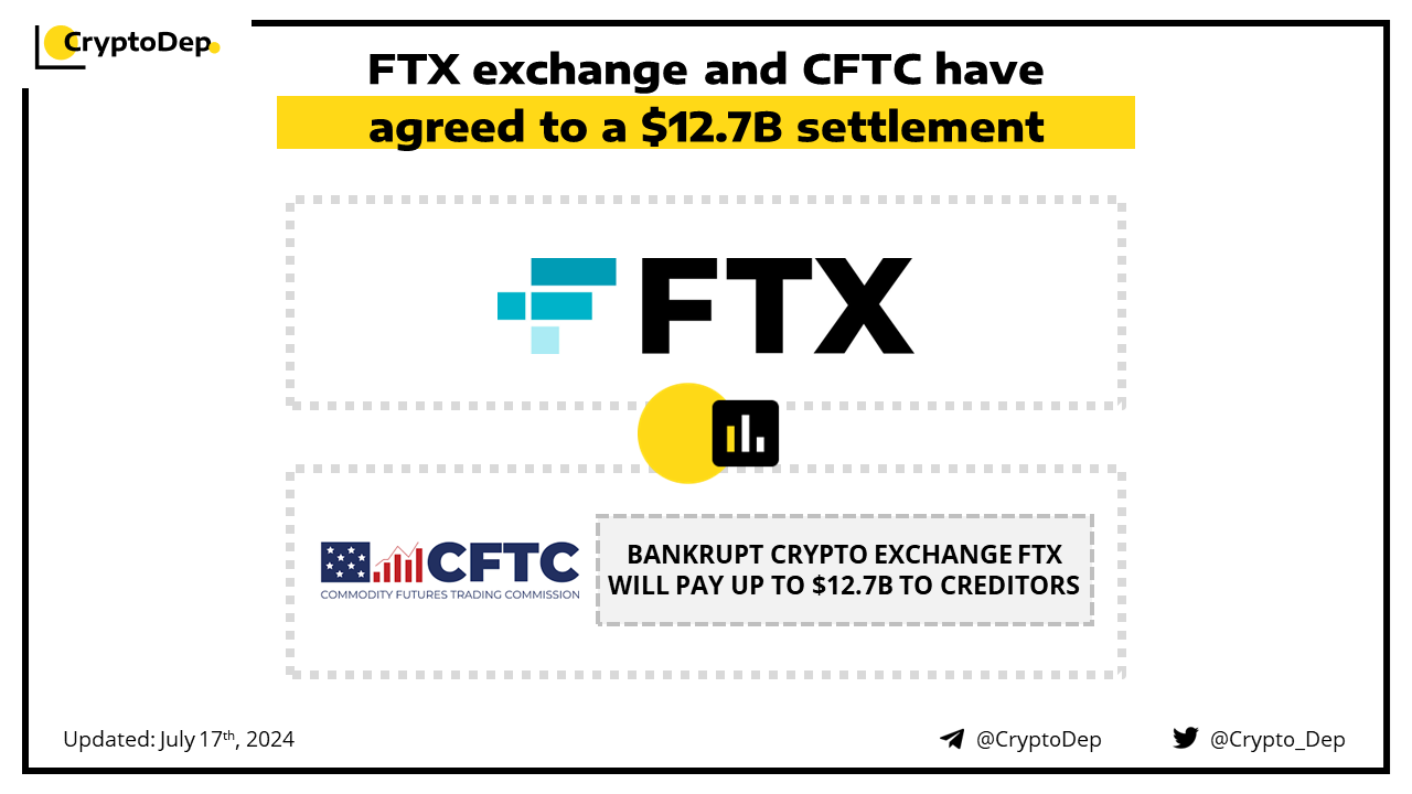 Bankrupt crypto exchange FTX and the U.S. Commodity Futures Trading Commission have agreed to a $12.7B settlement. In terms of this agreement, CFTC has agreed to receive nothing as long as FTX complies with its reorganization plan. The settlement agreement is divided into $8.7B in restitution and $4B in disgorgement. Thus, FTX will pay up to $12.7B to creditors, subject to available funds.