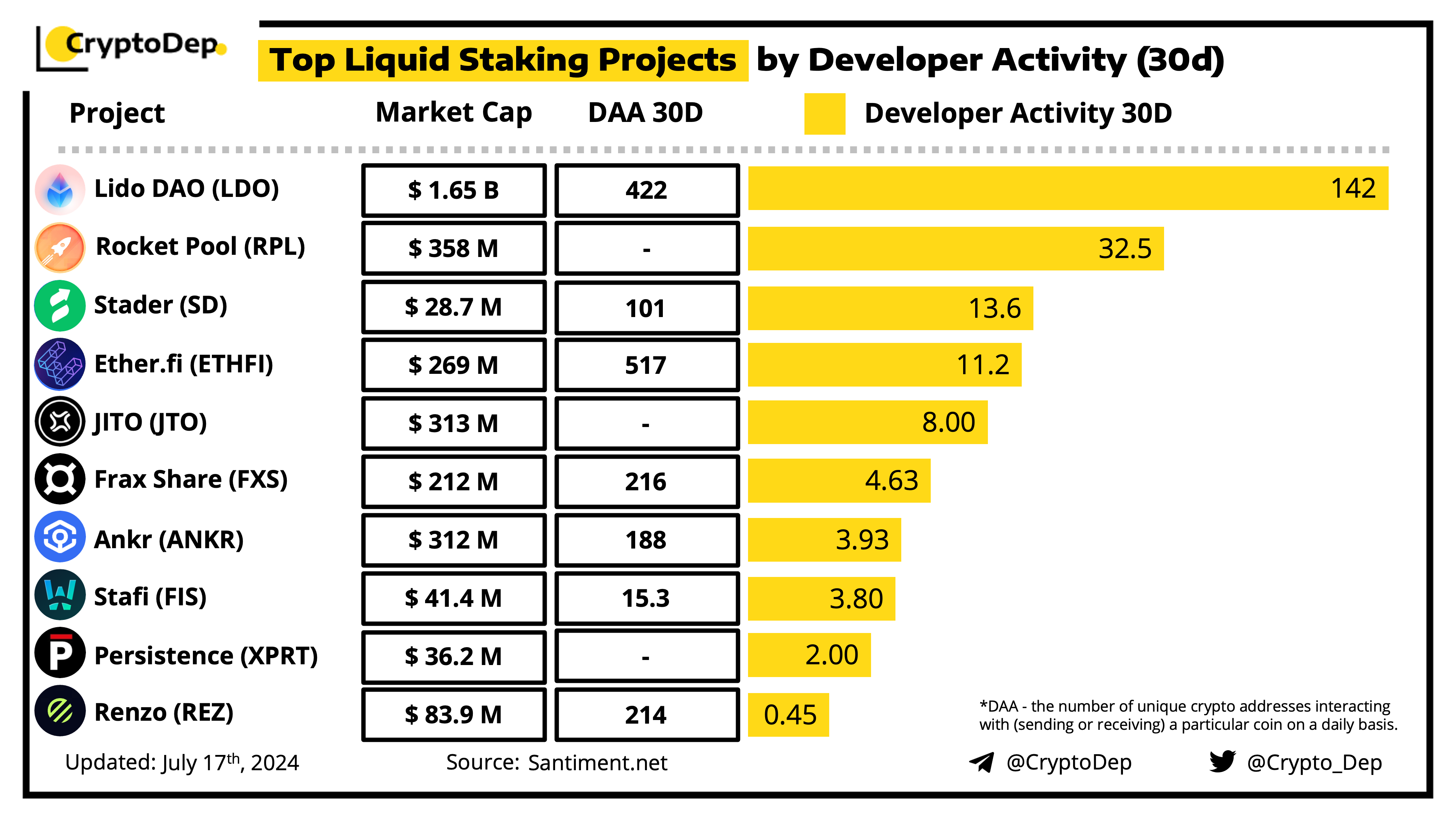 Top Liquid Staking Projects by Developer Activity (30d)