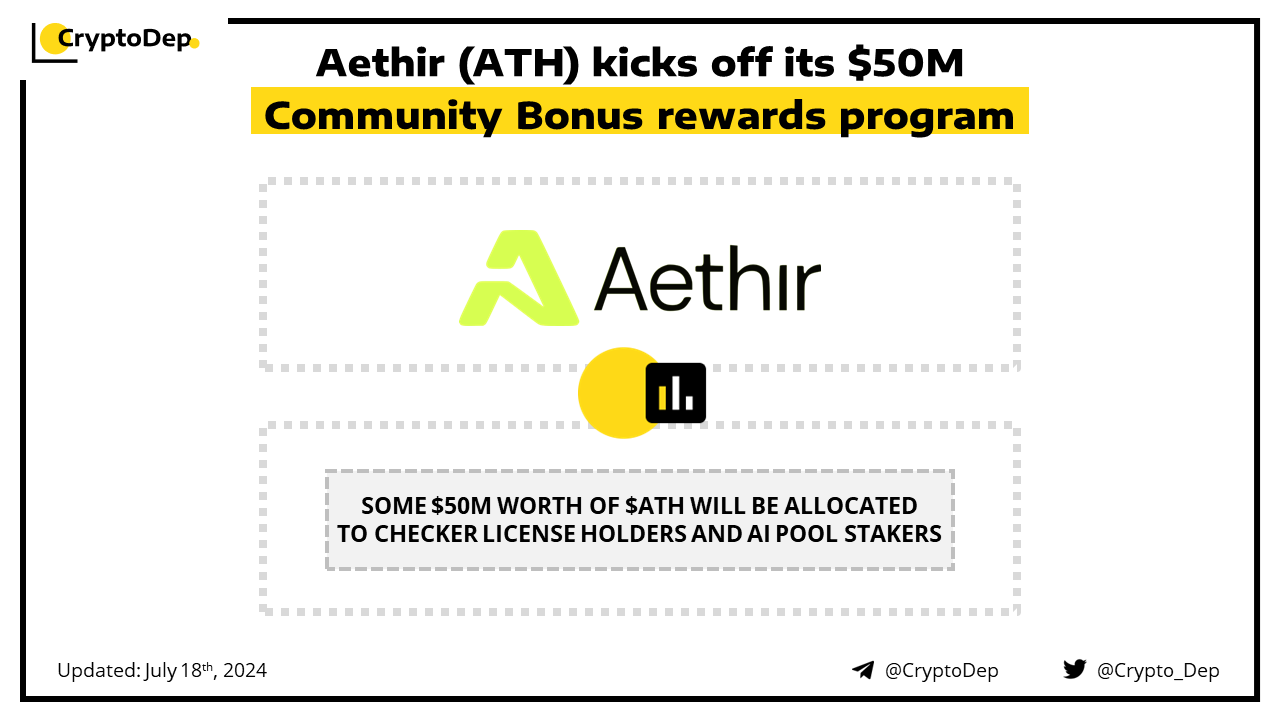 Aethir Foundation has announced the Aethir Community Rewards Program with $50M worth of $ATH in rewards. Some $50M in $ATH, initially allocated to token swap with IO.net, will be distributed to Checker License holders and ATH-AI pool stakers. Aethir builds scalable decentralized cloud infrastructure for Gaming & AI. The project is backed by HashKey Capital, Merit Circle, Big Brain Holdings, Momentum 6, and others.