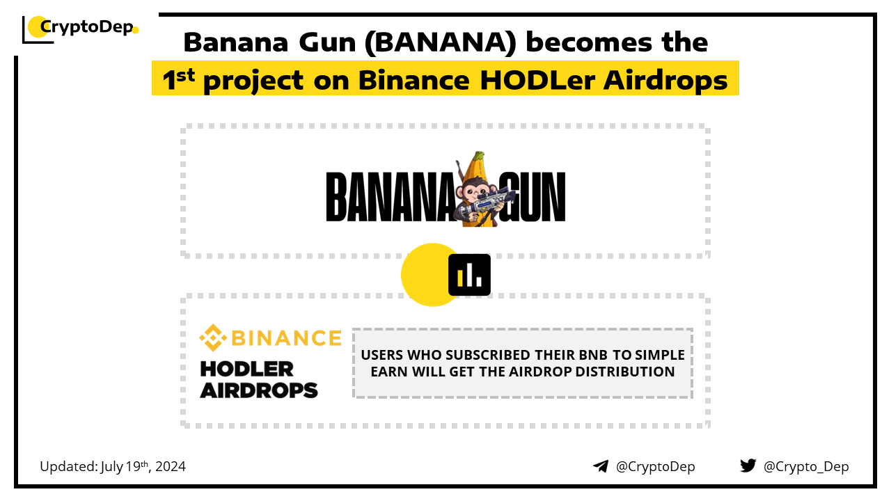 Banana Gun (BANANA) becomes the 1st project on Binance HODLer Airdrops