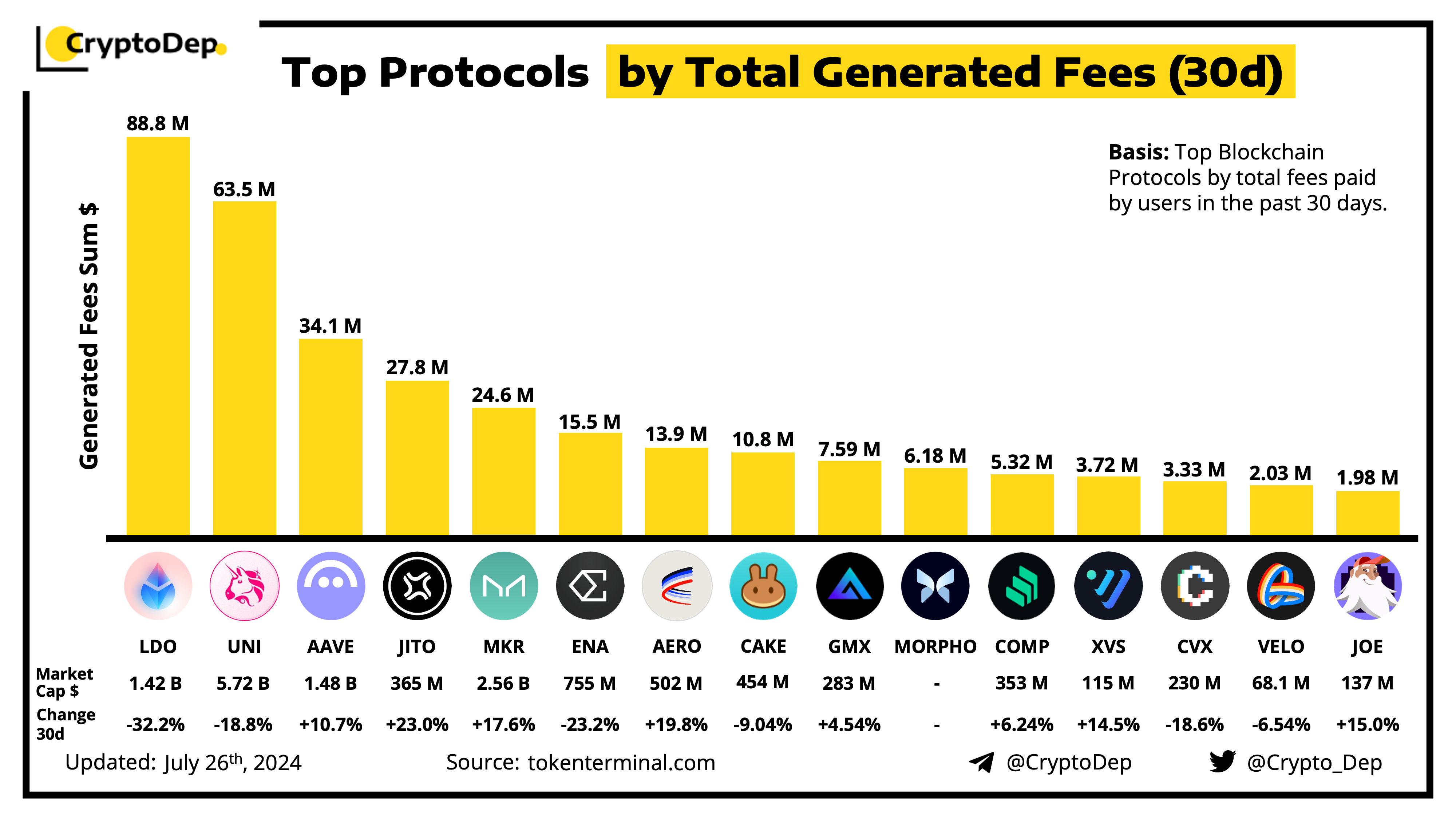 Top Blockchain Protocols by Total Generated Fees (30d)