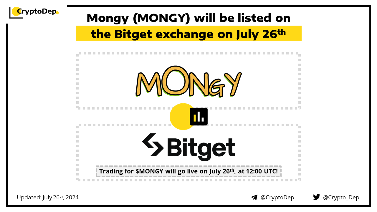 Mongy (MONGY) will be listed on the Bitget exchange on July 26th