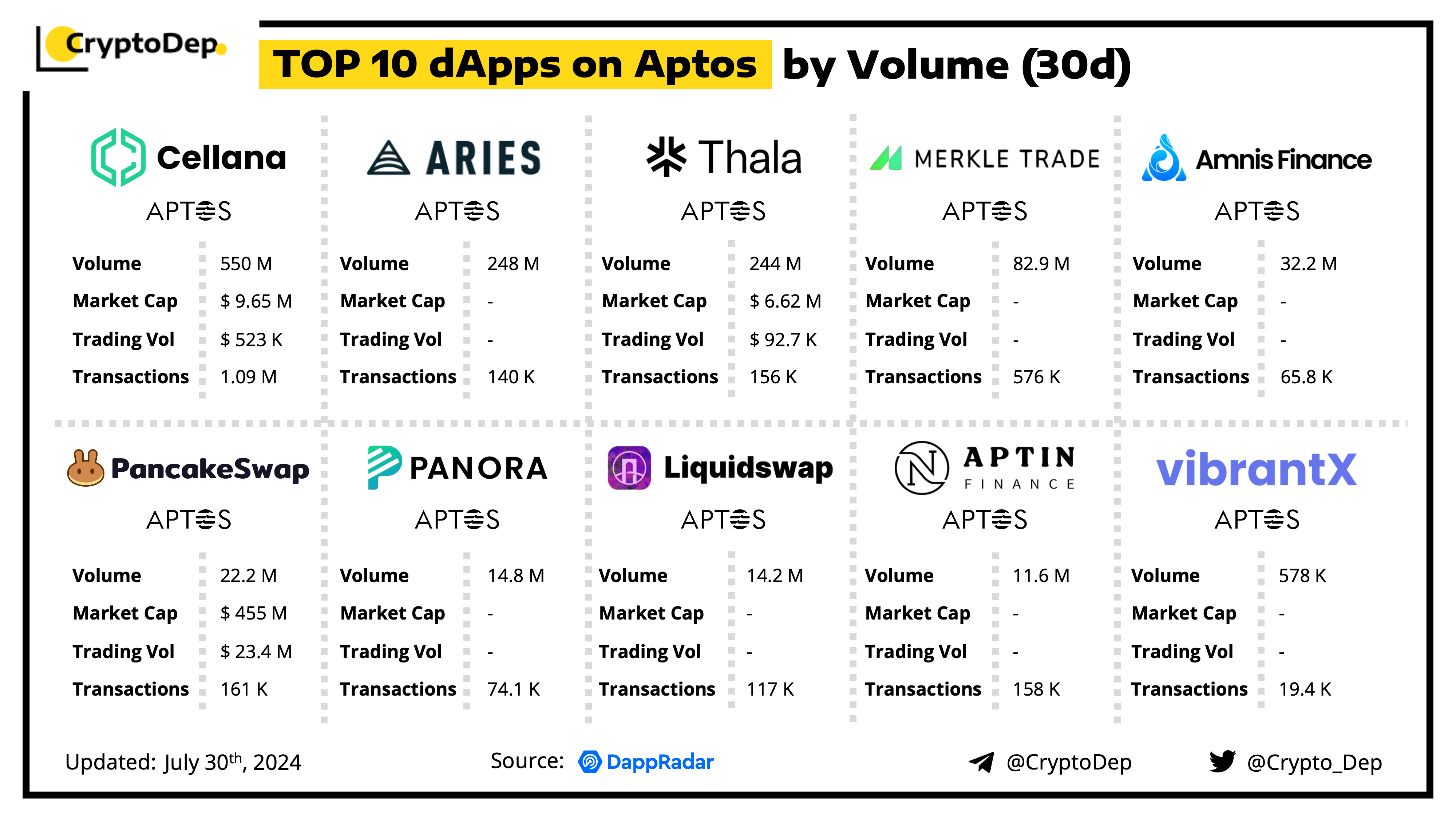 TOP 10 dApps on Aptos by Volume (30d)