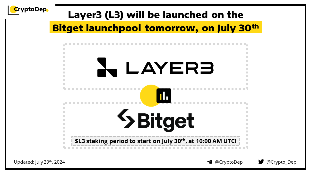 Layer3 (L3) will be launched on the Bitget launchpool tomorrow, on July 30th