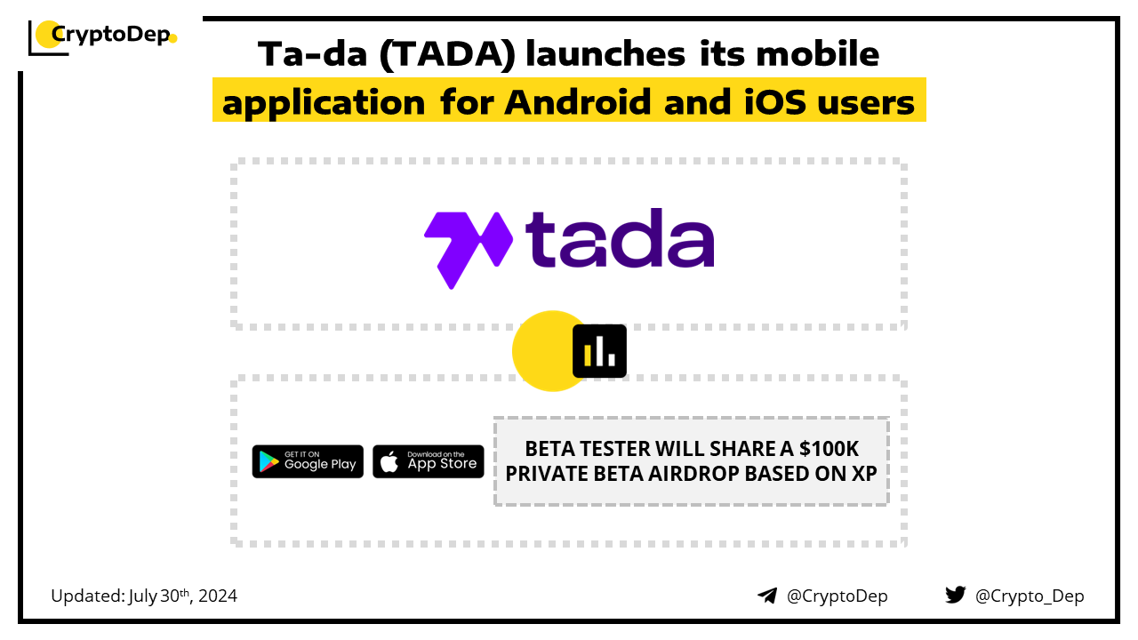 Ta-da has rolled out its mobile app which is now available on Google Play and AppStore. Users can sign up now and grab a share of a boosted $50K prize pool, while the beta tester will share a $100K private beta airdrop based on XP. Moreover, the project will use the app's revenue to buy back $TADA tokens from the market. Ta-da is a "talk-to-earn" Web3 app backed by Morningstar Ventures, MultiversX, GBV Capital, Spark Digital, and others.