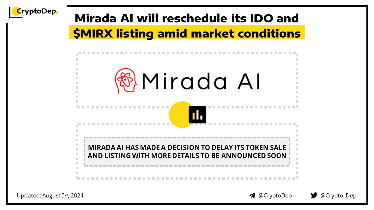 ββMirada AI will reschedule its IDO and $MIRX listing amid market conditions