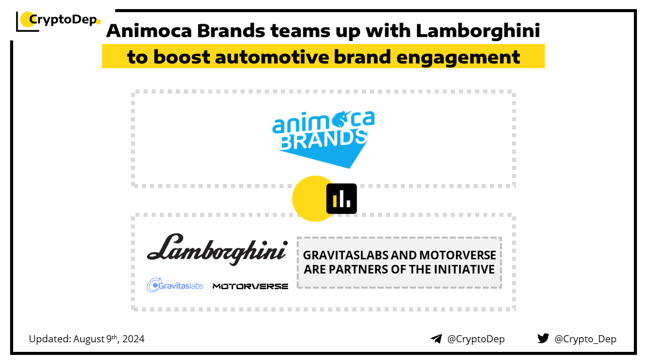 Animoca Brands announces a partnership with Automobili Lamborghini to shape the future of brand engagement in the automotive industry. Creative design studio and technology company Gravitaslabs and Motorverse, a global ecosystem for digital vehicles, have been chosen as the exclusive partners for this initiative. Animoca Brands leverages blockchain to deliver digital property rights to consumers around the world to help establish the open metaverse.