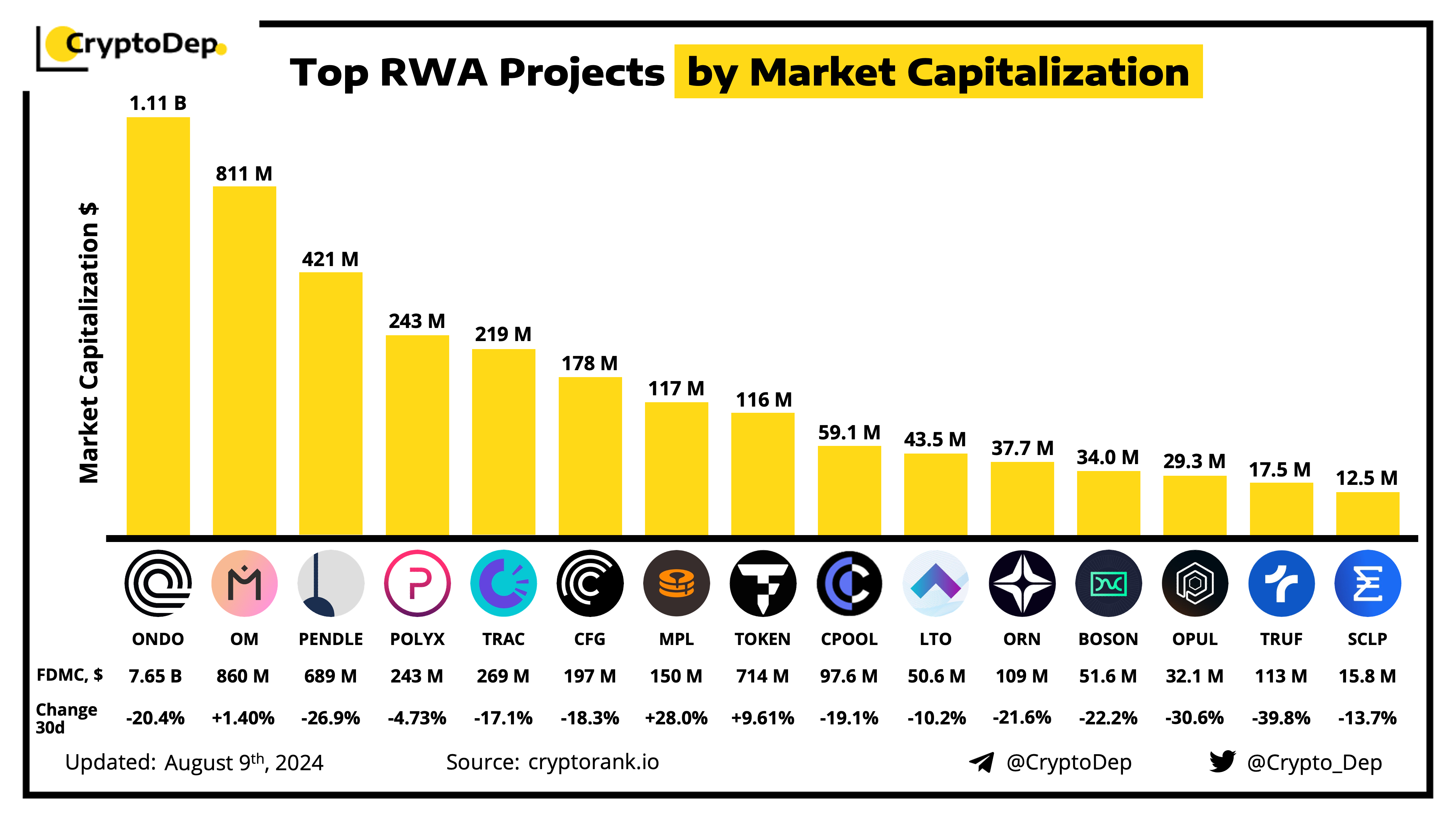 Real World Assets (RWAs) became one of the most hyped narratives of current market momentum. Let's explore the leading RWA projects ranged by market capitalization.