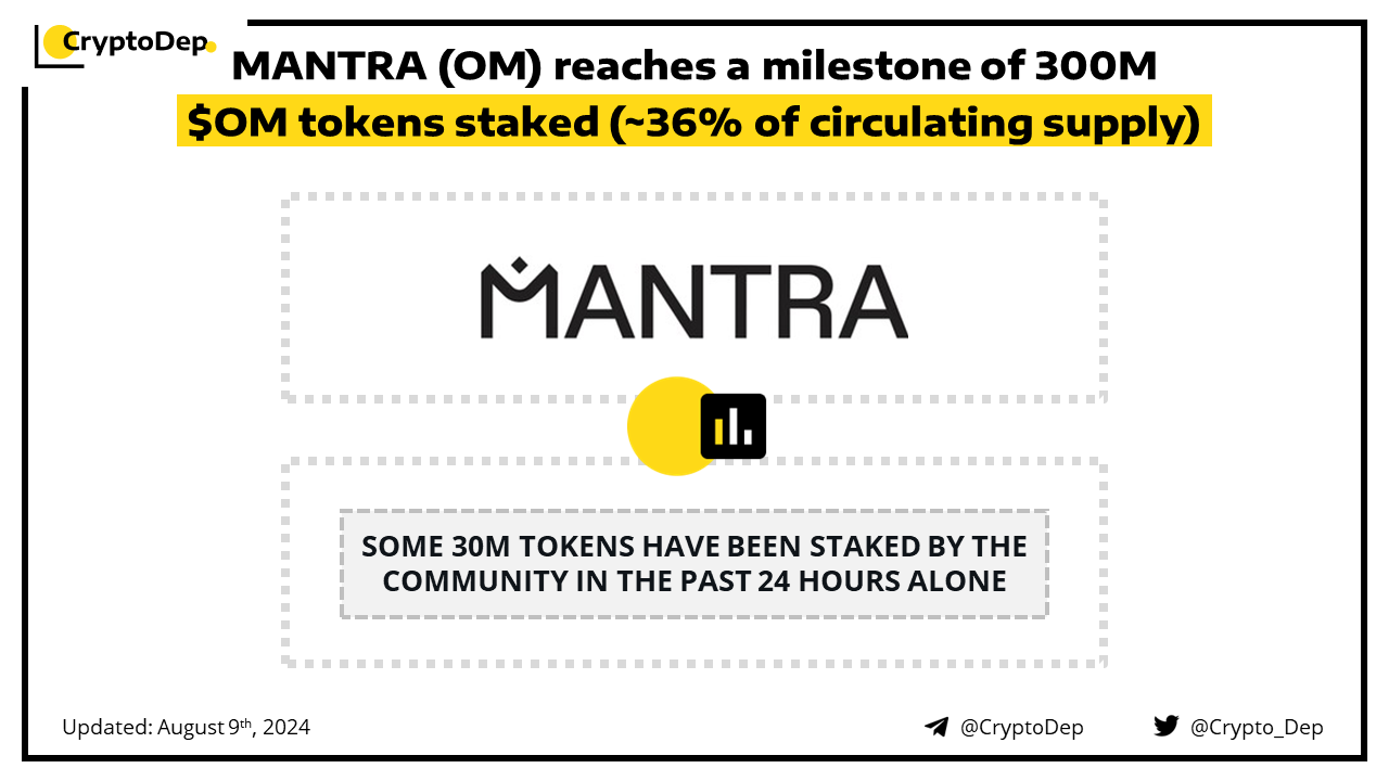 ββMANTRA (OM) reaches a milestone of 300M $OM tokens staked (~36% of circulating supply)